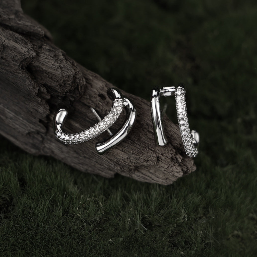 Ohrringe mit zweireihiger Zirkoniaverzierung