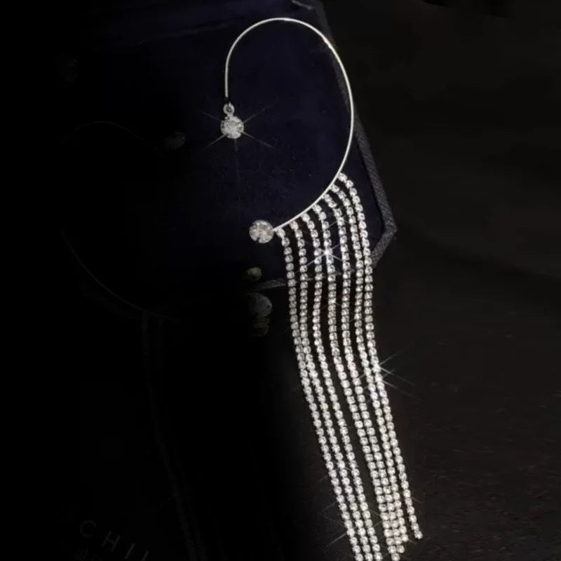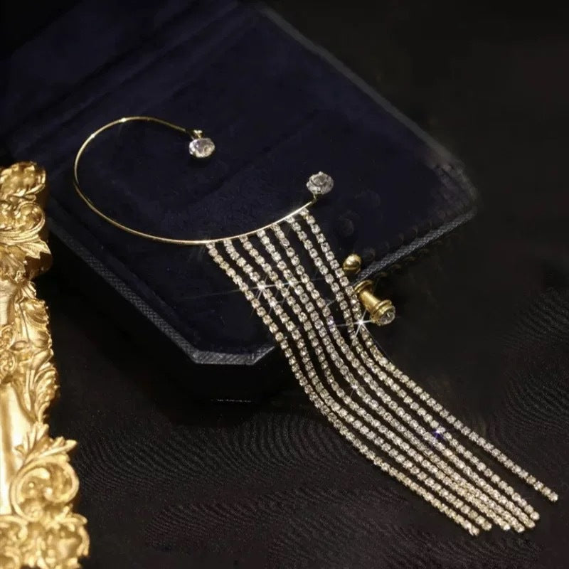 Ausgefallene Ohrringe mit langen Quasten und Strasssteinen für Damen