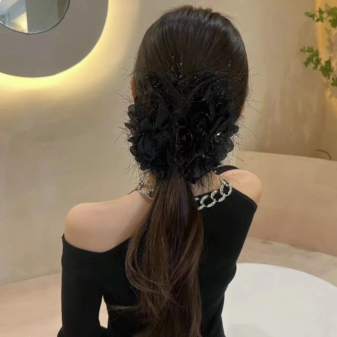 Wunderschöne große schwarze Schmetterling glänzende Strass Quaste Haarspange