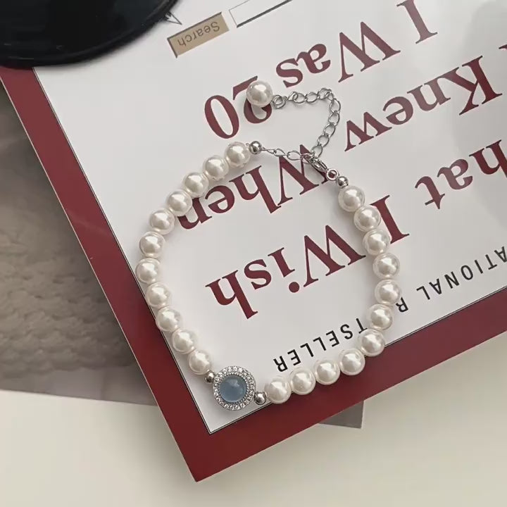 Wunderschönes Damen Perlenarmband mit blauem Strass
