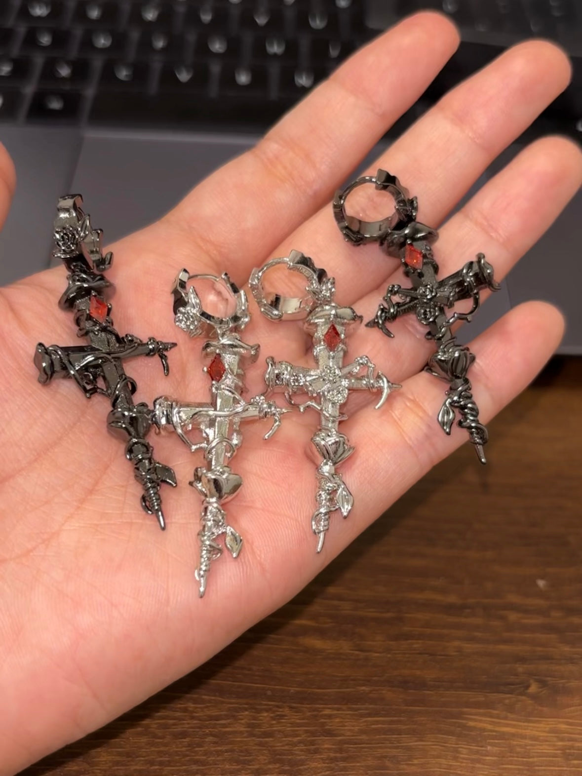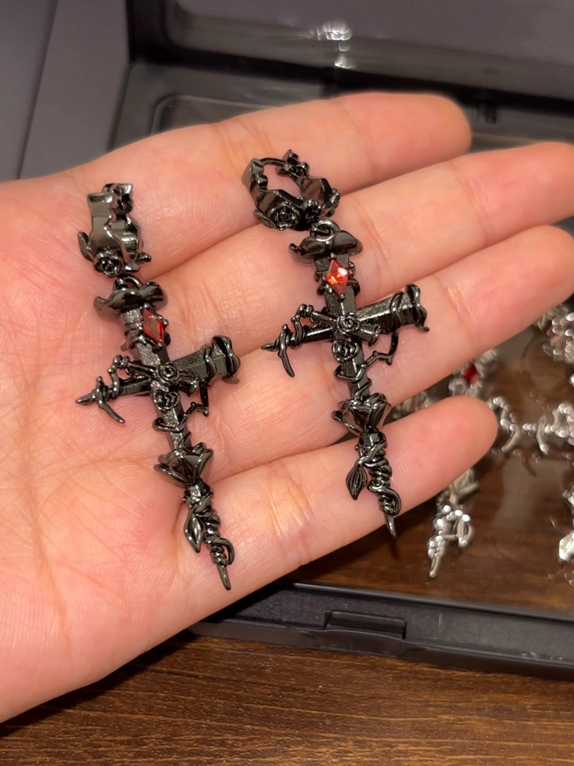 Goth Unisex Thorn Rose Cross Hoop Earrings
