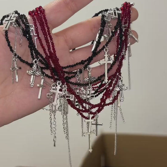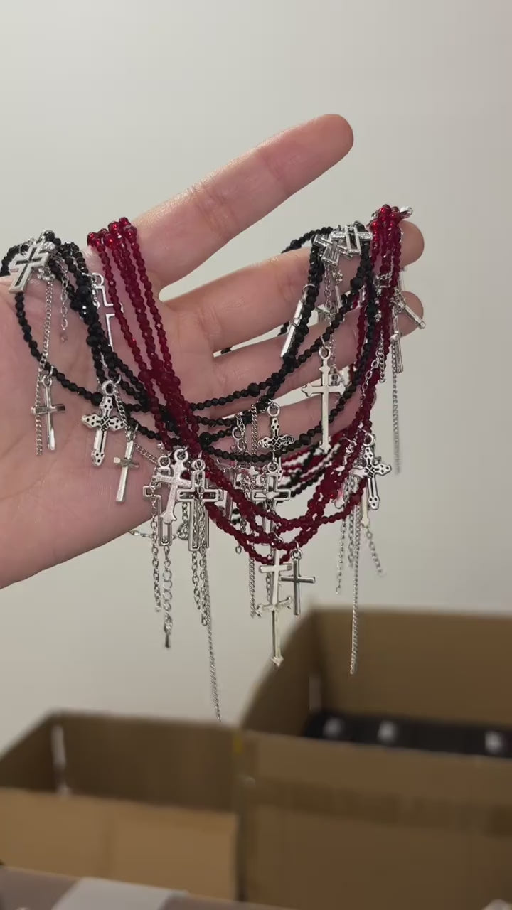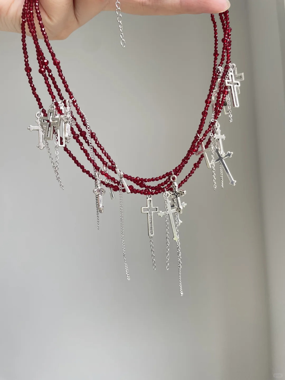 Gothic Armband Rotes Kreuz Choker Halskette & Armband