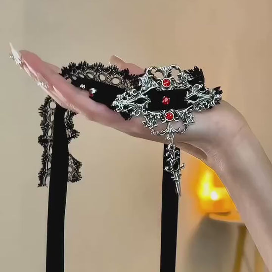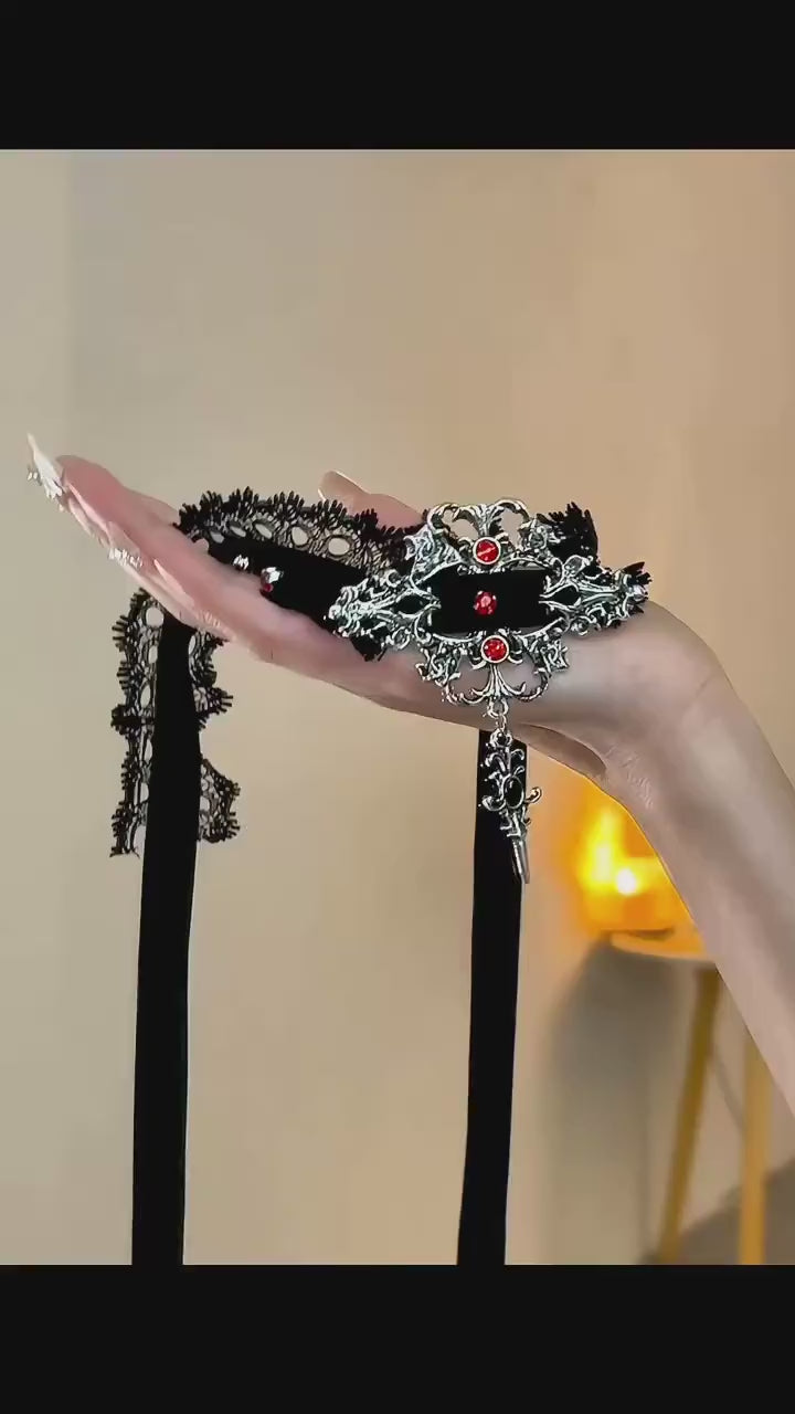 Gothic Punk Schwarz Velet Rot Strass Halsband