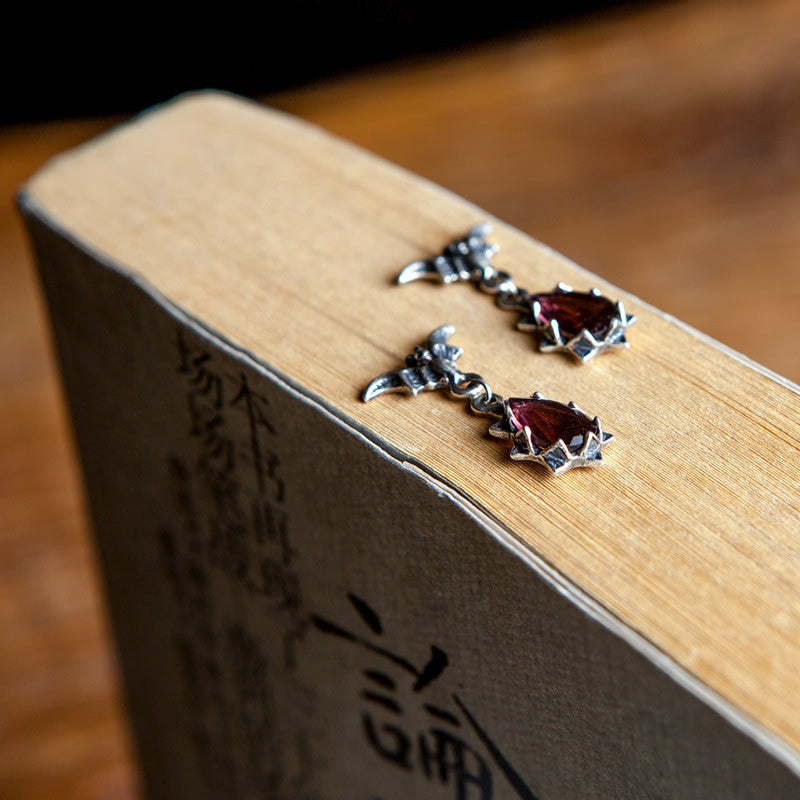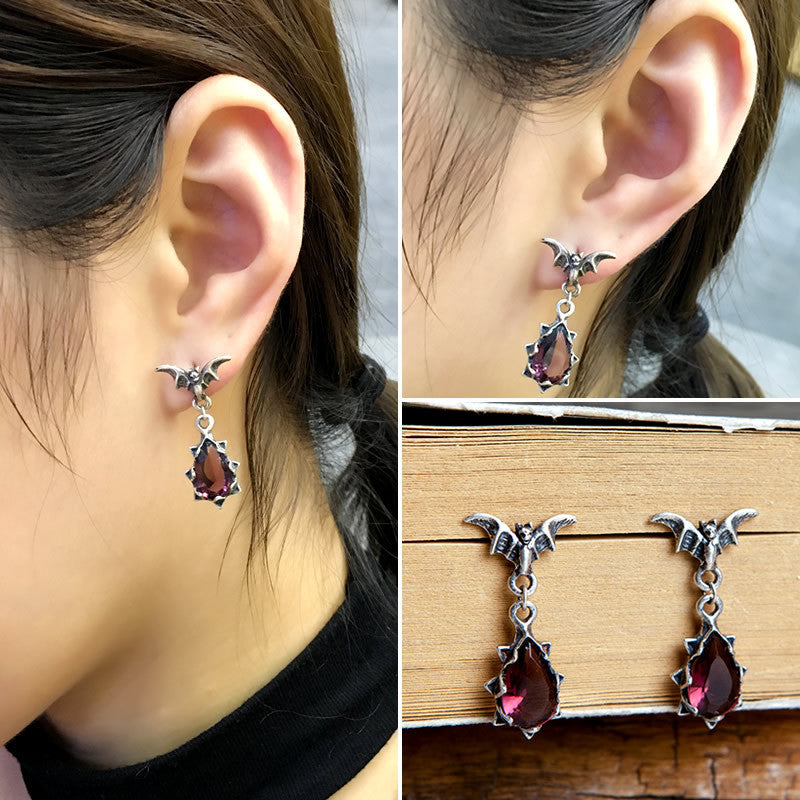 Gothic S925 Silber Fledermaus Rot Kristall Ohrstecker