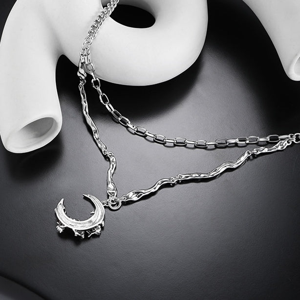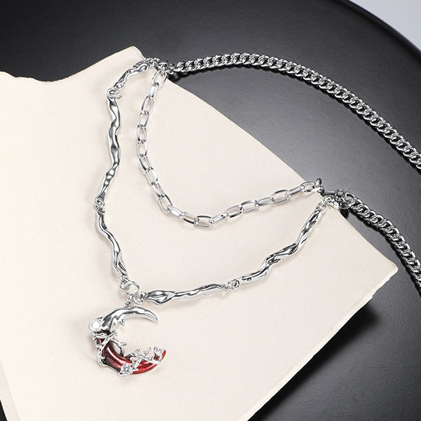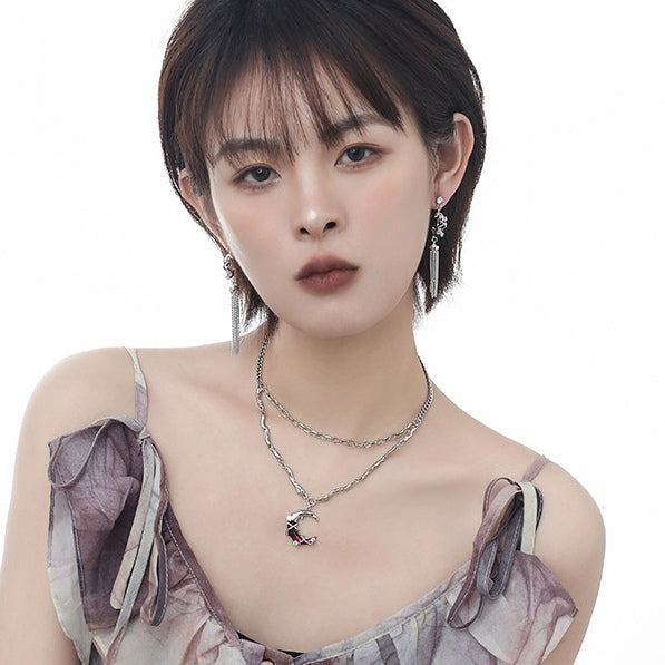 Gothic Stil Mädchen Rot Mond Leuchtenden Stern Doppel Schichten Halskette
