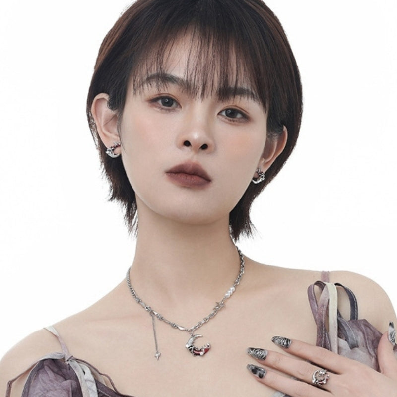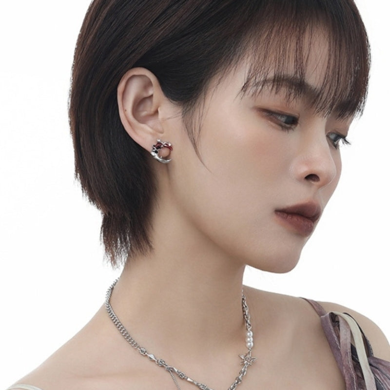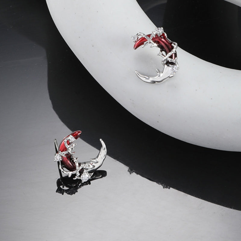Ohrstecker im Gothic-Stil mit rotem Mond und leuchtendem Stern