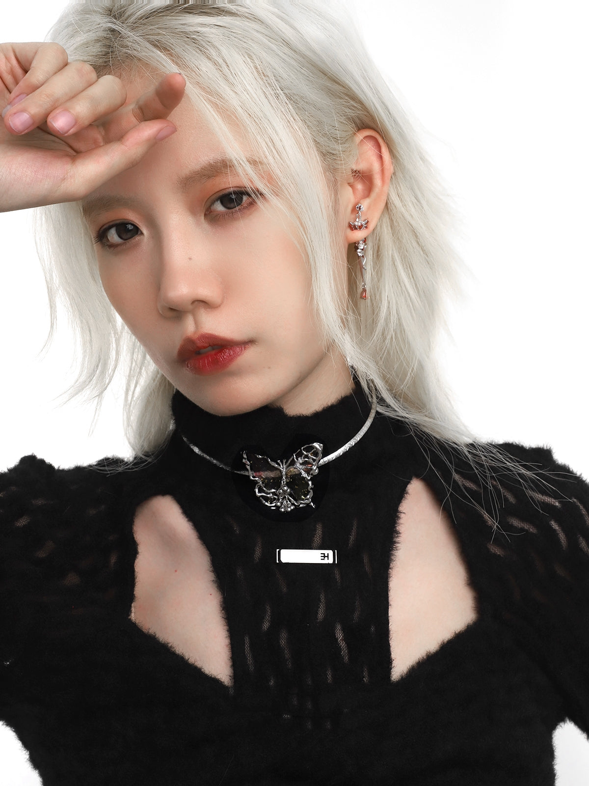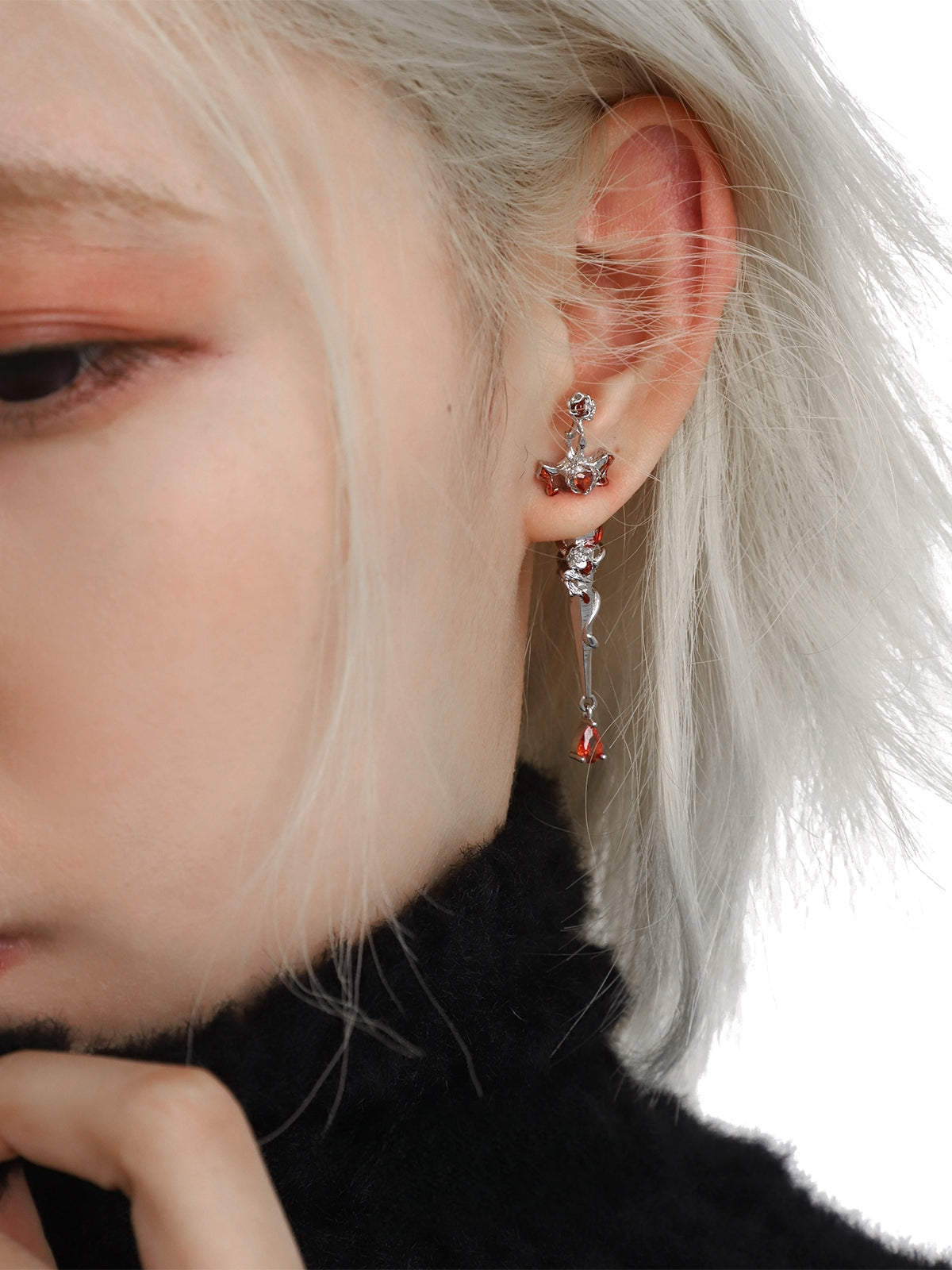 Gothic Vintage Rotes Herz Schwert Designer Ohrstecker