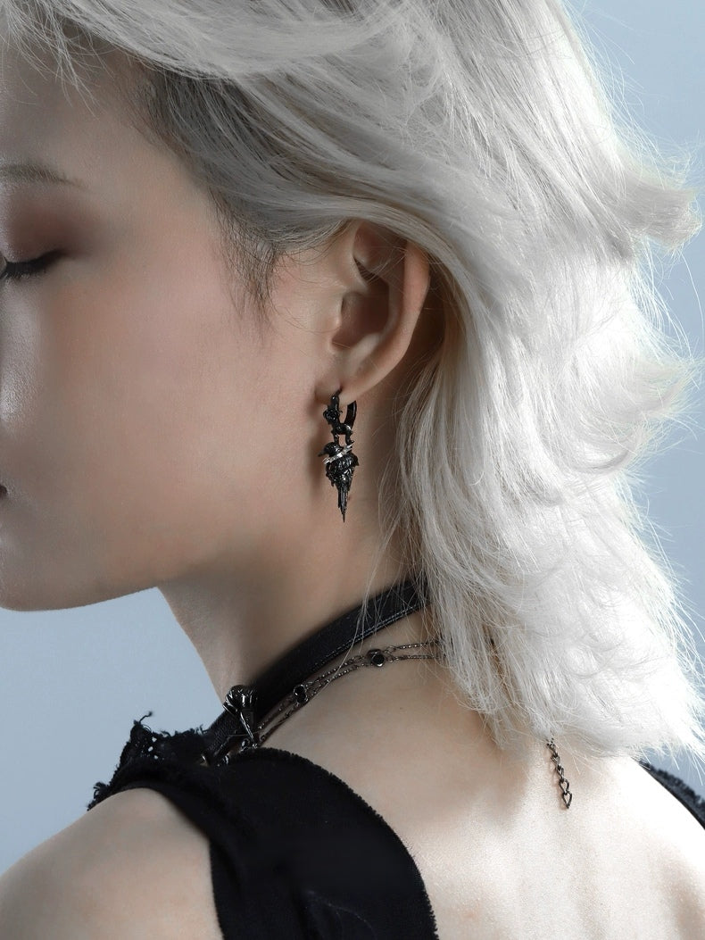 Mystic Unisex Demontierbarer Rabenblumen-Creolen-Ohrring