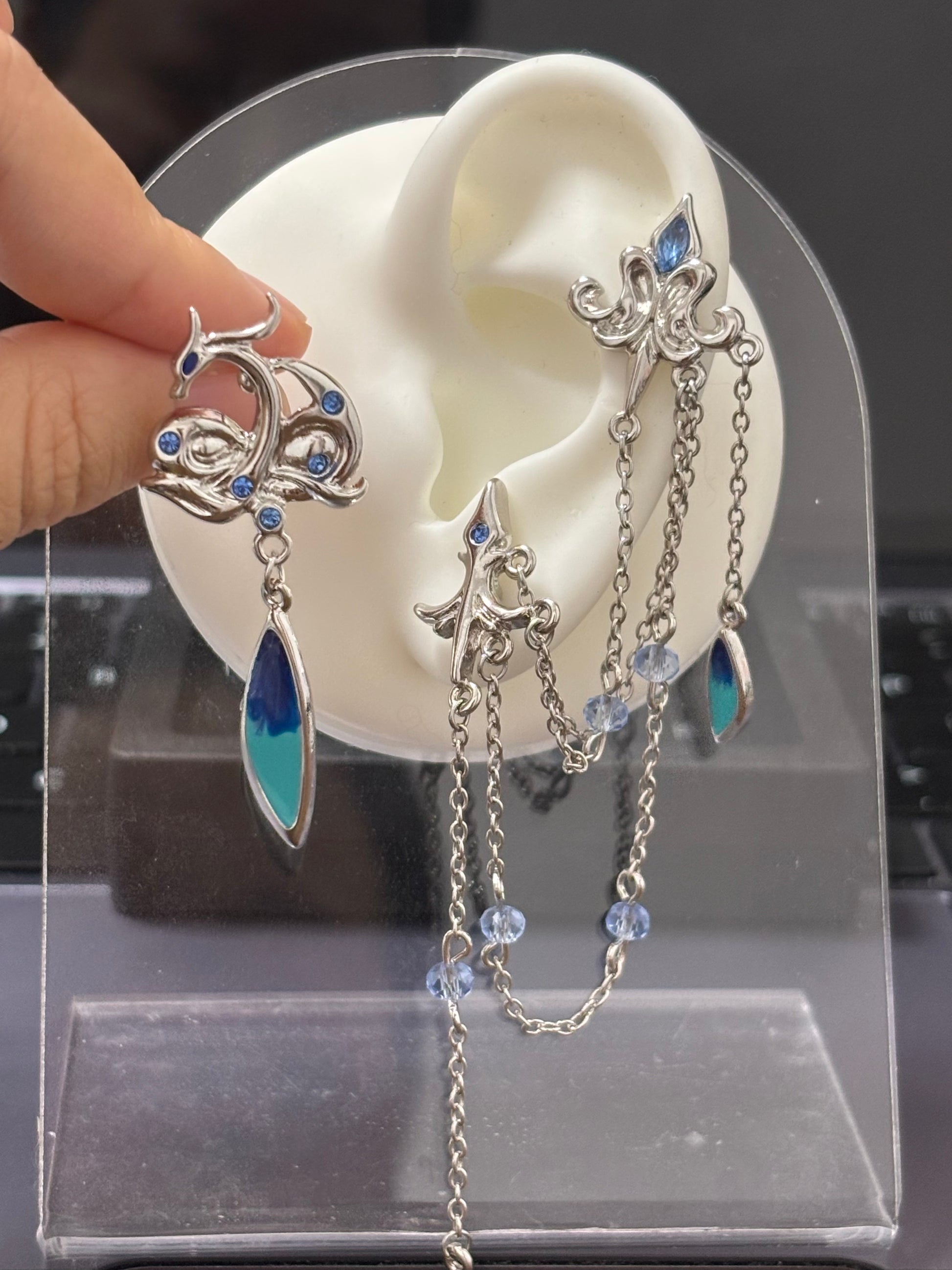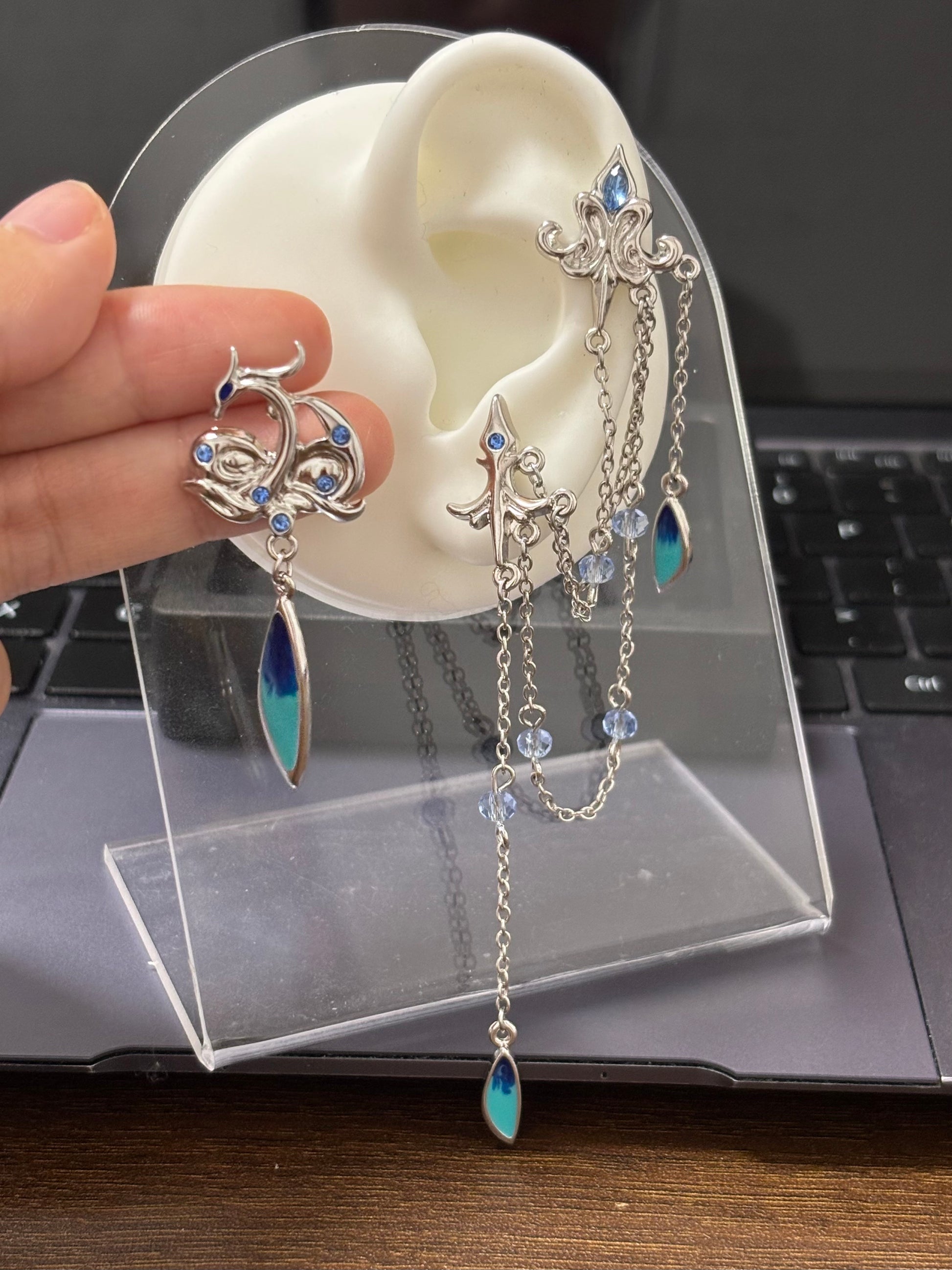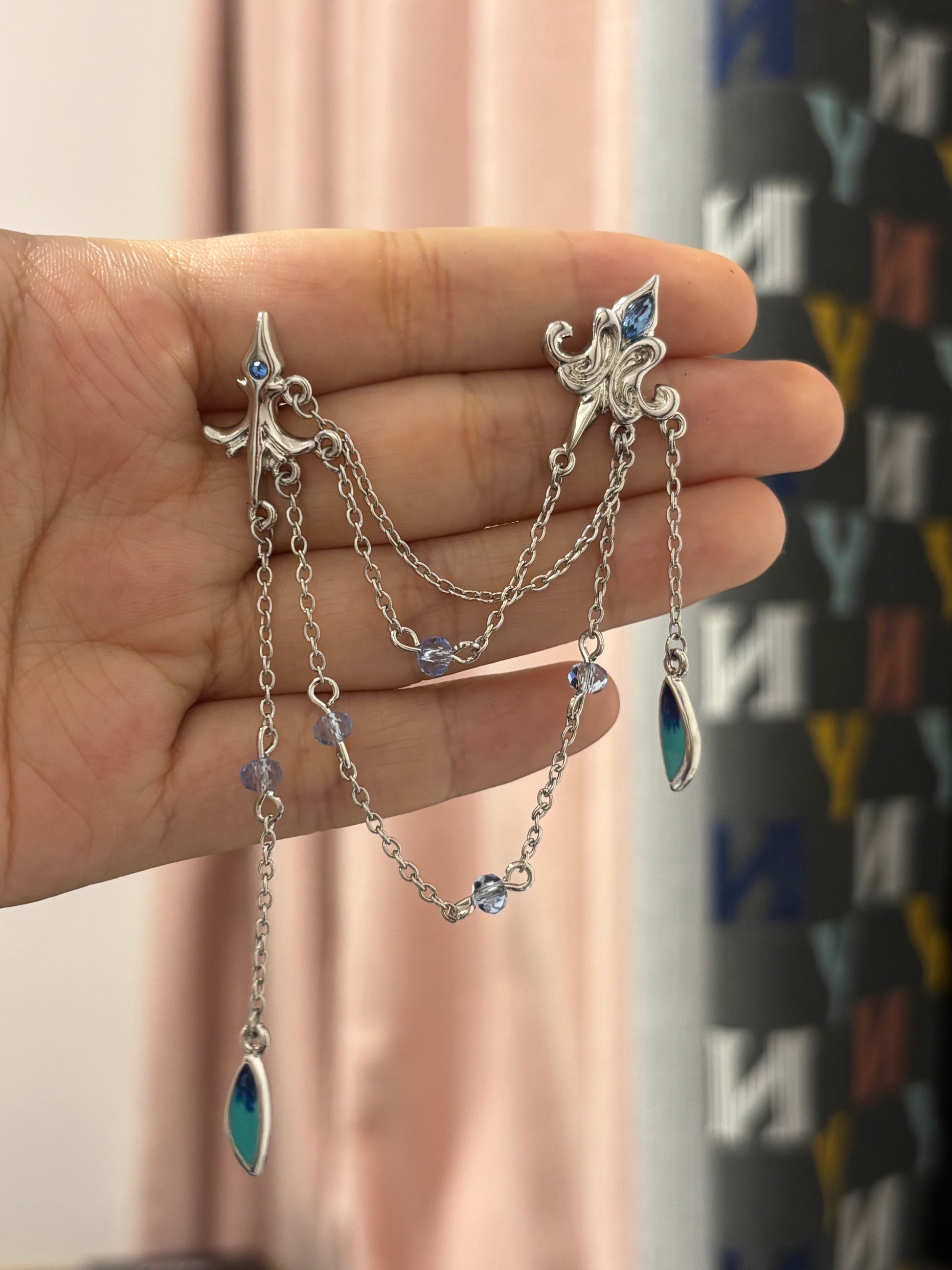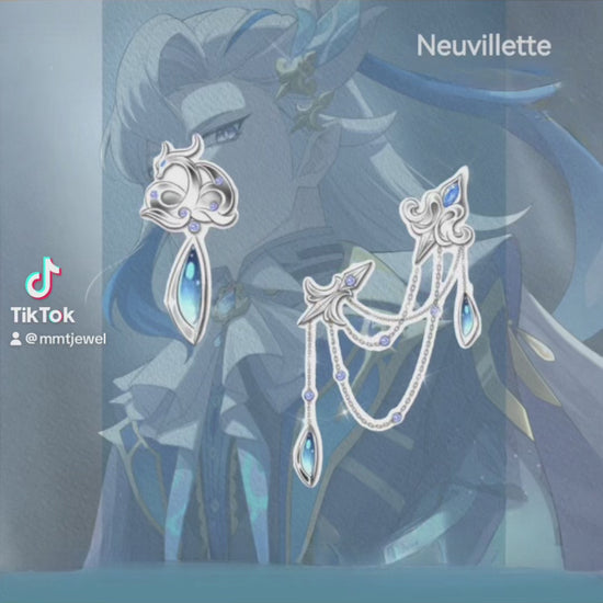 Neuvillette Genshin Impact Designer Blaue asymmetrische Ohrringe