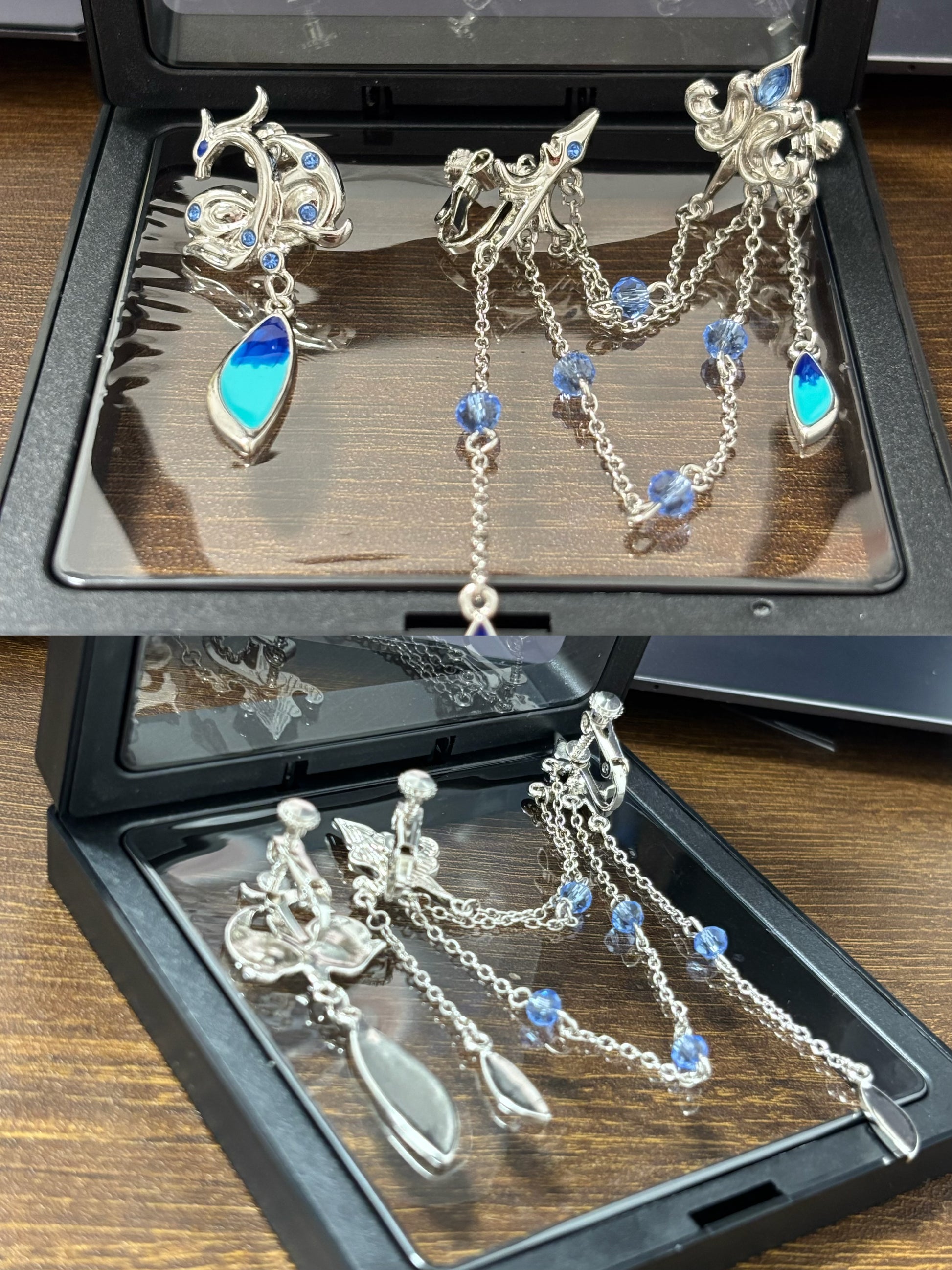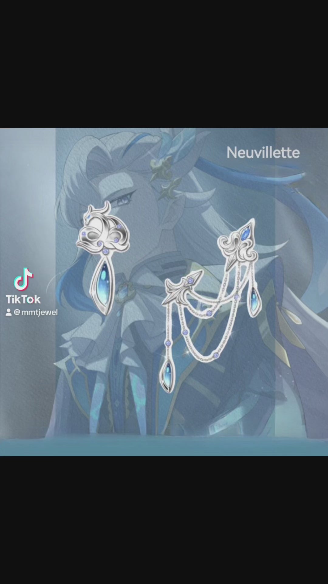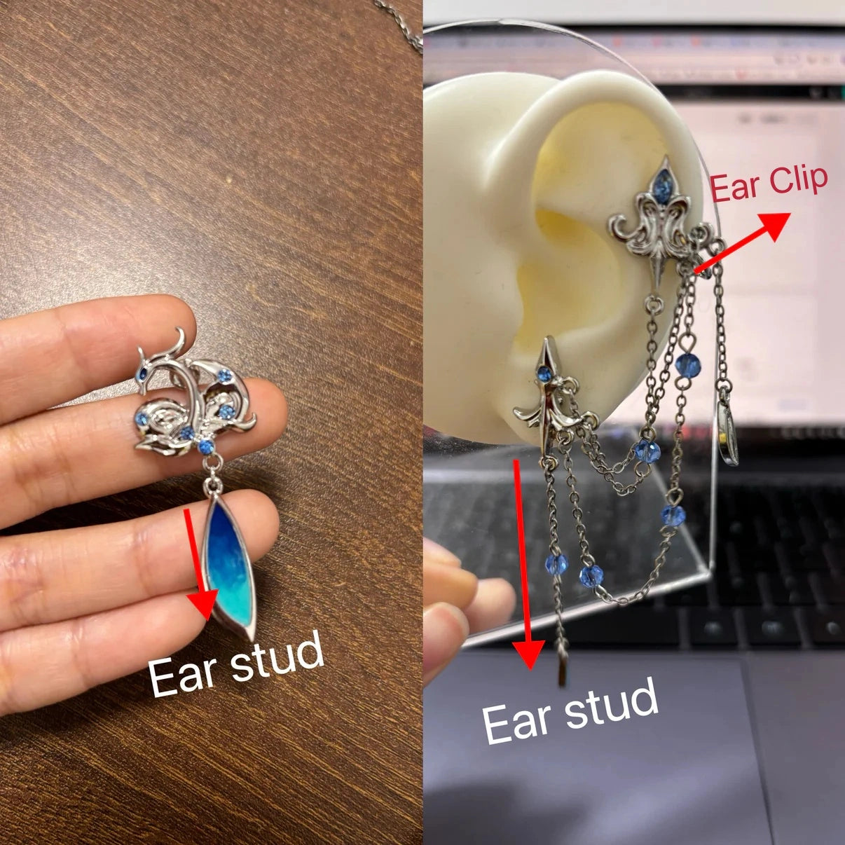 Neuvillette Genshin Impact Designer Blaue asymmetrische Ohrringe