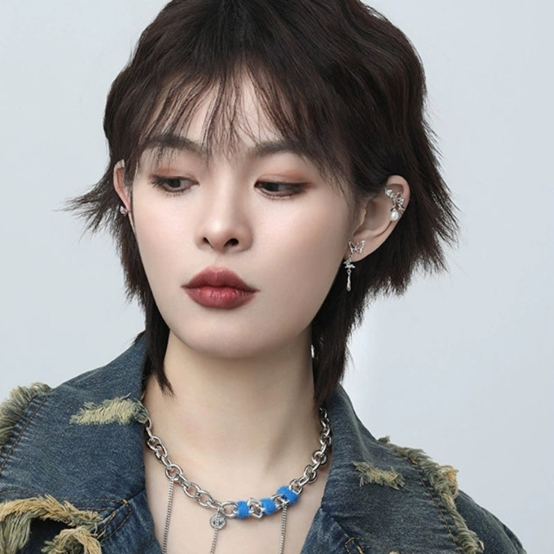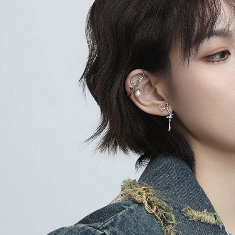 Hübsches Mädchen Designer Weiß Schmetterling Rose Perle Ohr Manschette & Ohrstecker