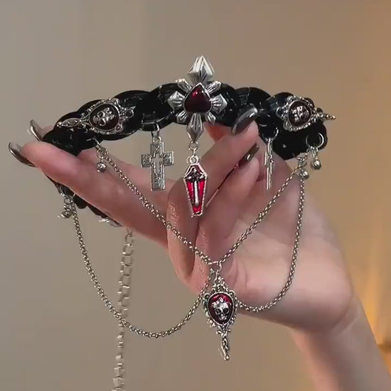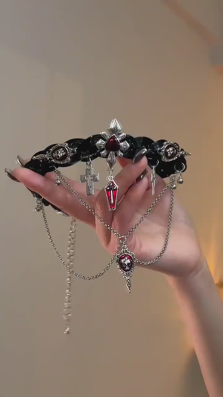 Punk Gothic Totenkopf Kreuz Quaste Choker