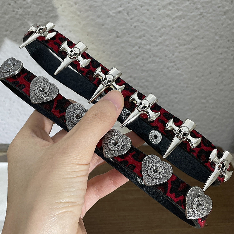 Punk Gothic Weinrot Leopardenmuster Herz/Kreuz Choker Halskette