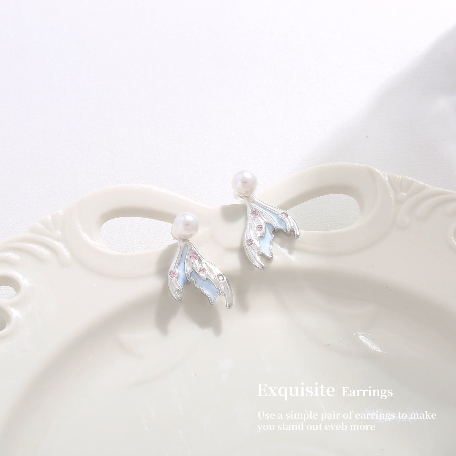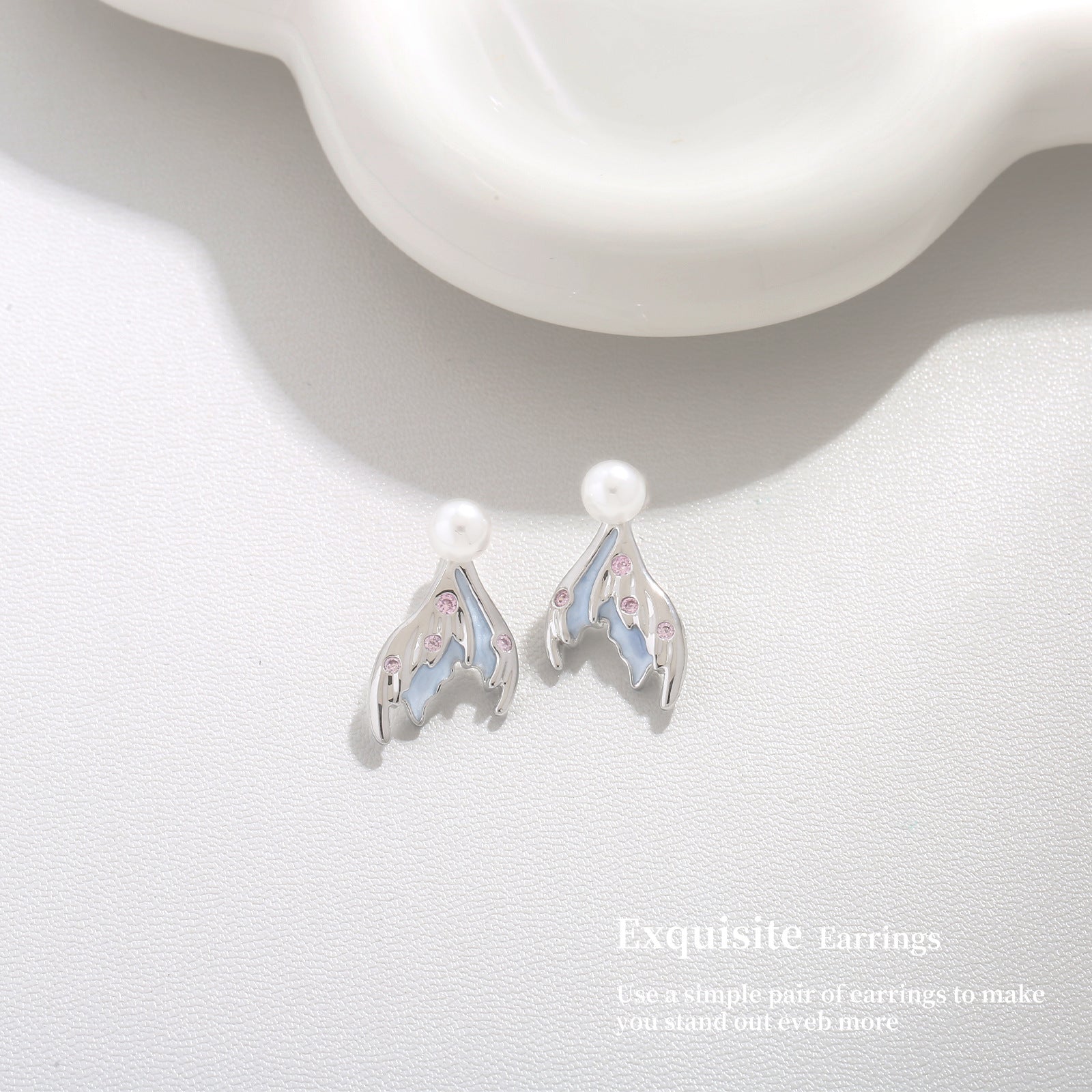 Rafayel – Ohrstecker mit blauem Fischschwanz und weißer Perle