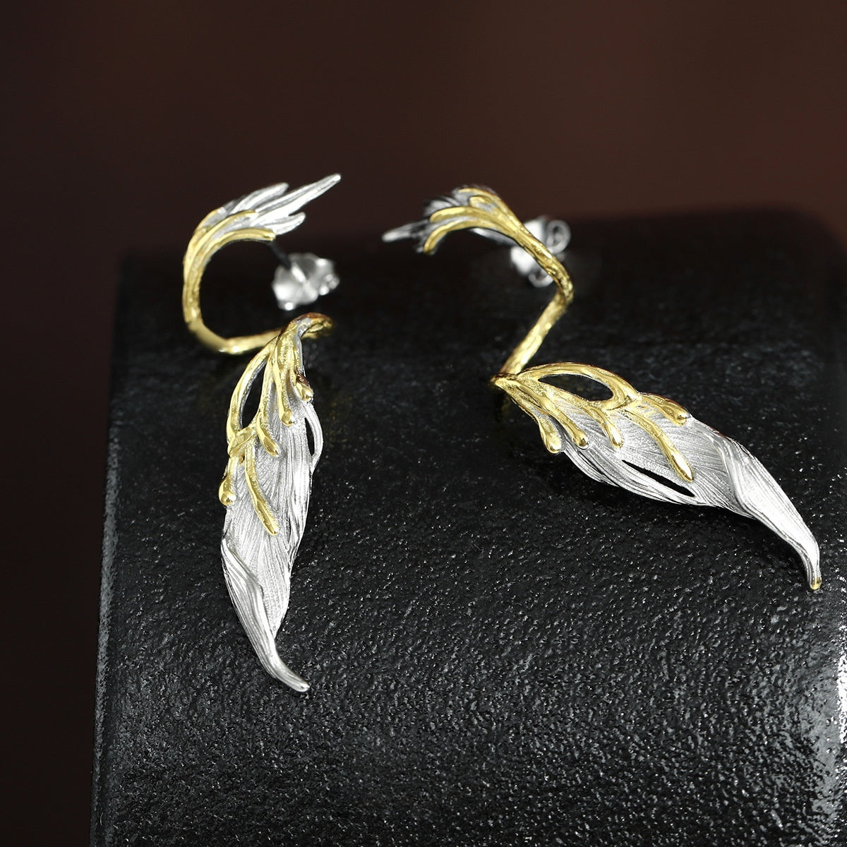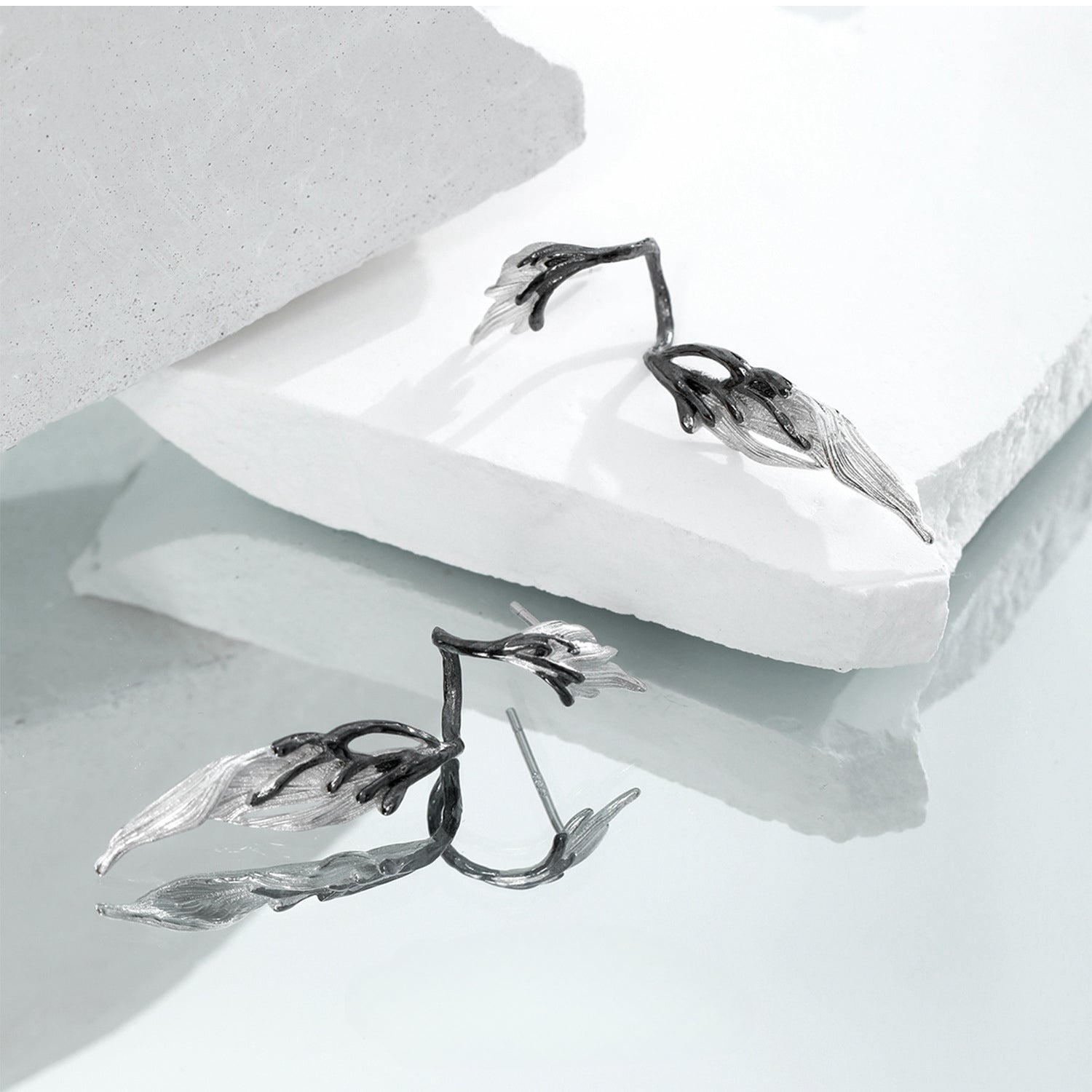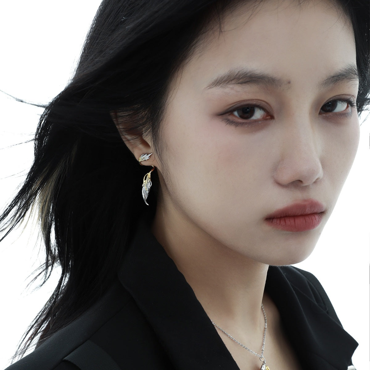 S925 Silber Schwarz Engel Flügel Feder Designer Ohrstecker