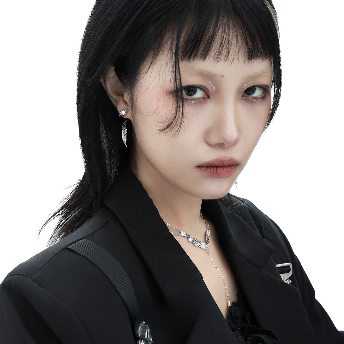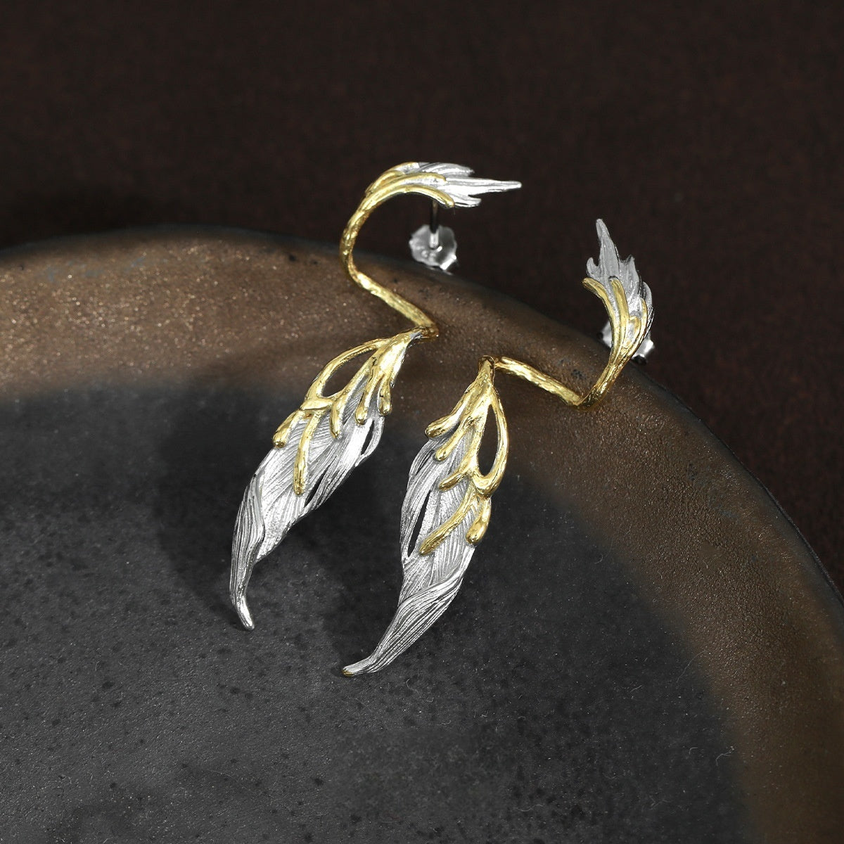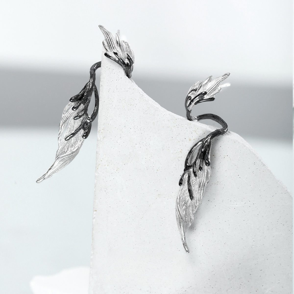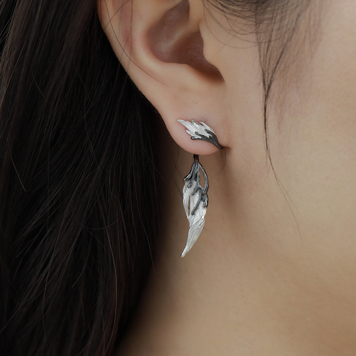 S925 Silber Schwarz Engel Flügel Feder Designer Ohrstecker