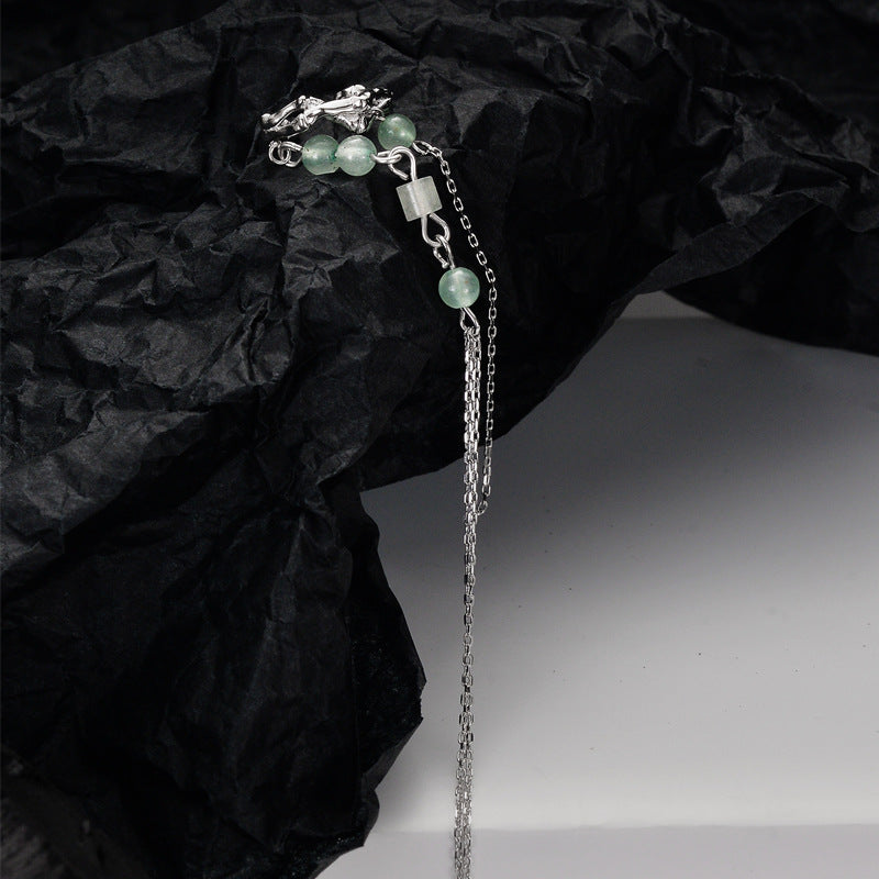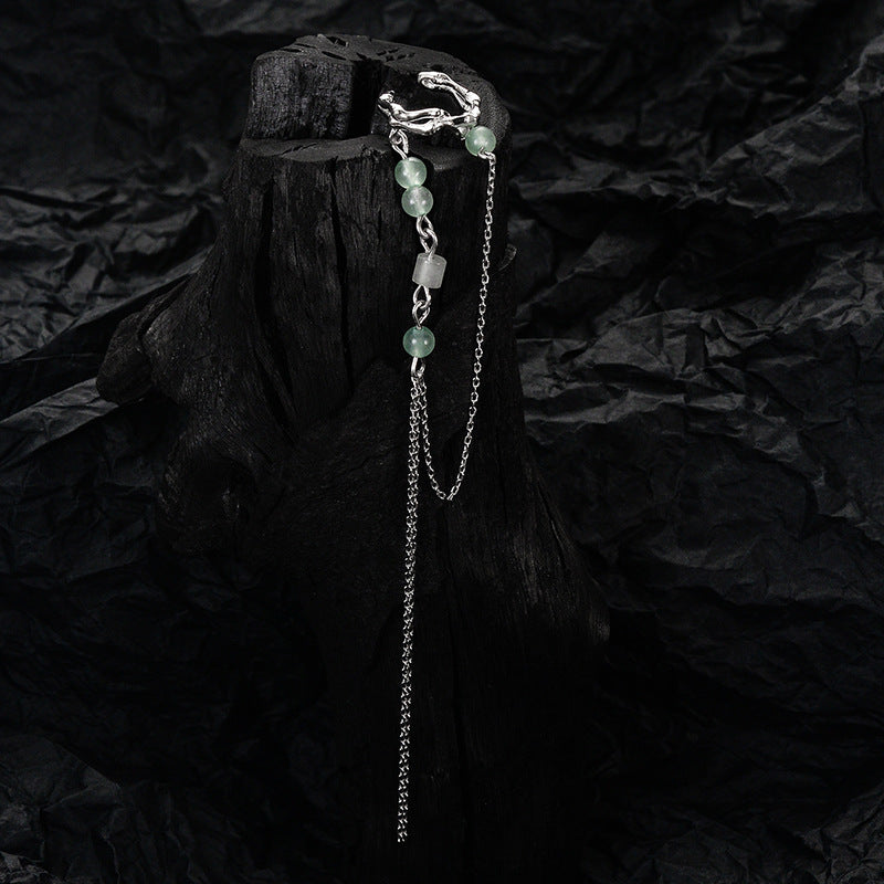 Ohrmanschette mit Quaste aus S925er Silber mit grünen Aventurinperlen (einzeln)