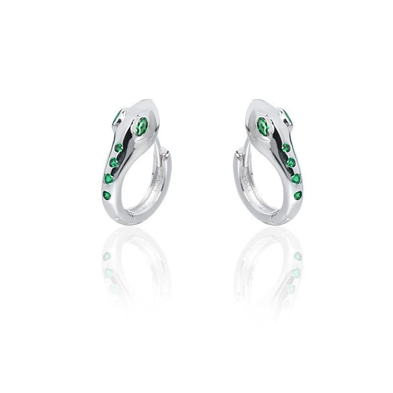 Kleine, schicke Creolen in Grün mit Schlangenmotiv