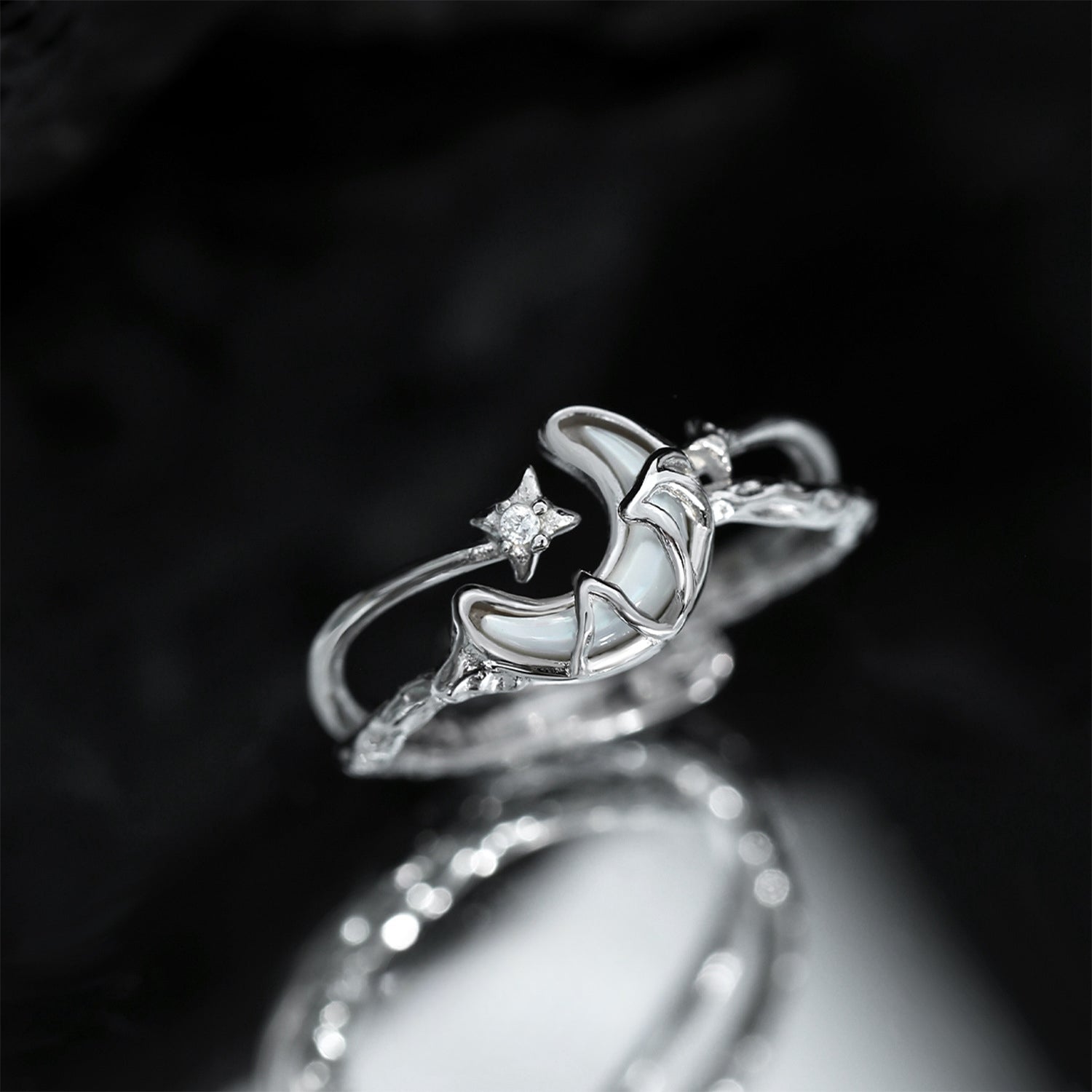 Stern & Mond Weiß Muschel Zirkon S925 Silber Ring