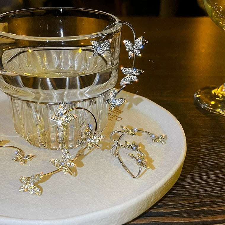 Super blinkende Schmetterlings-Manschetten-Ohrringe, Diamant-Ohrringe, kein Piercing
