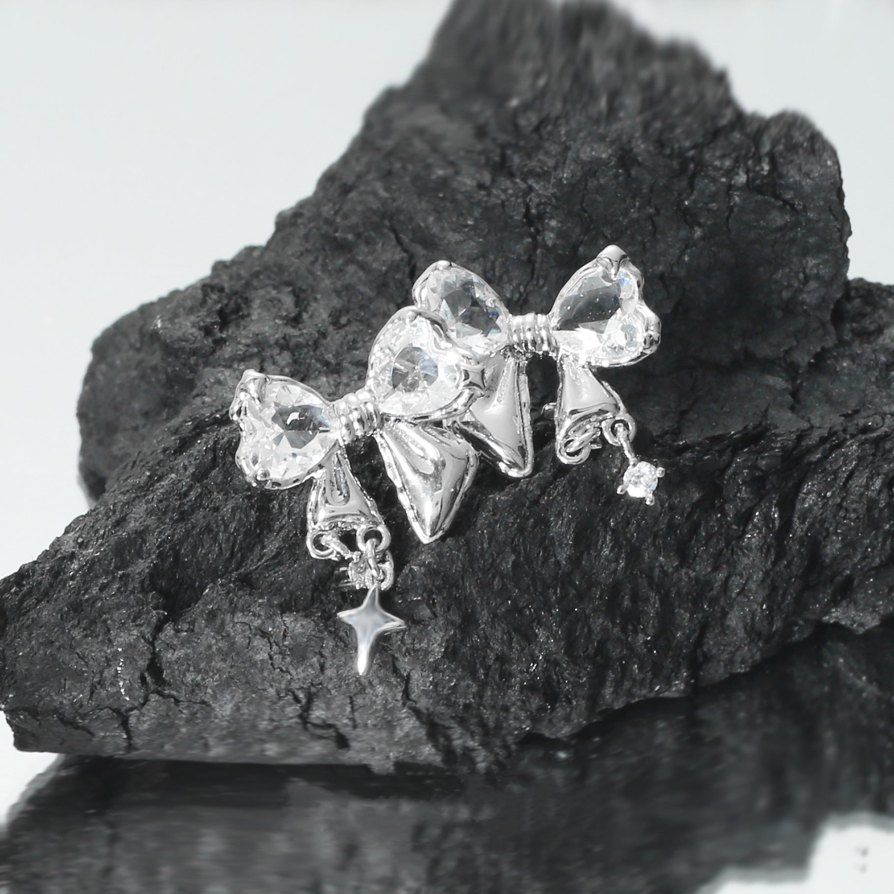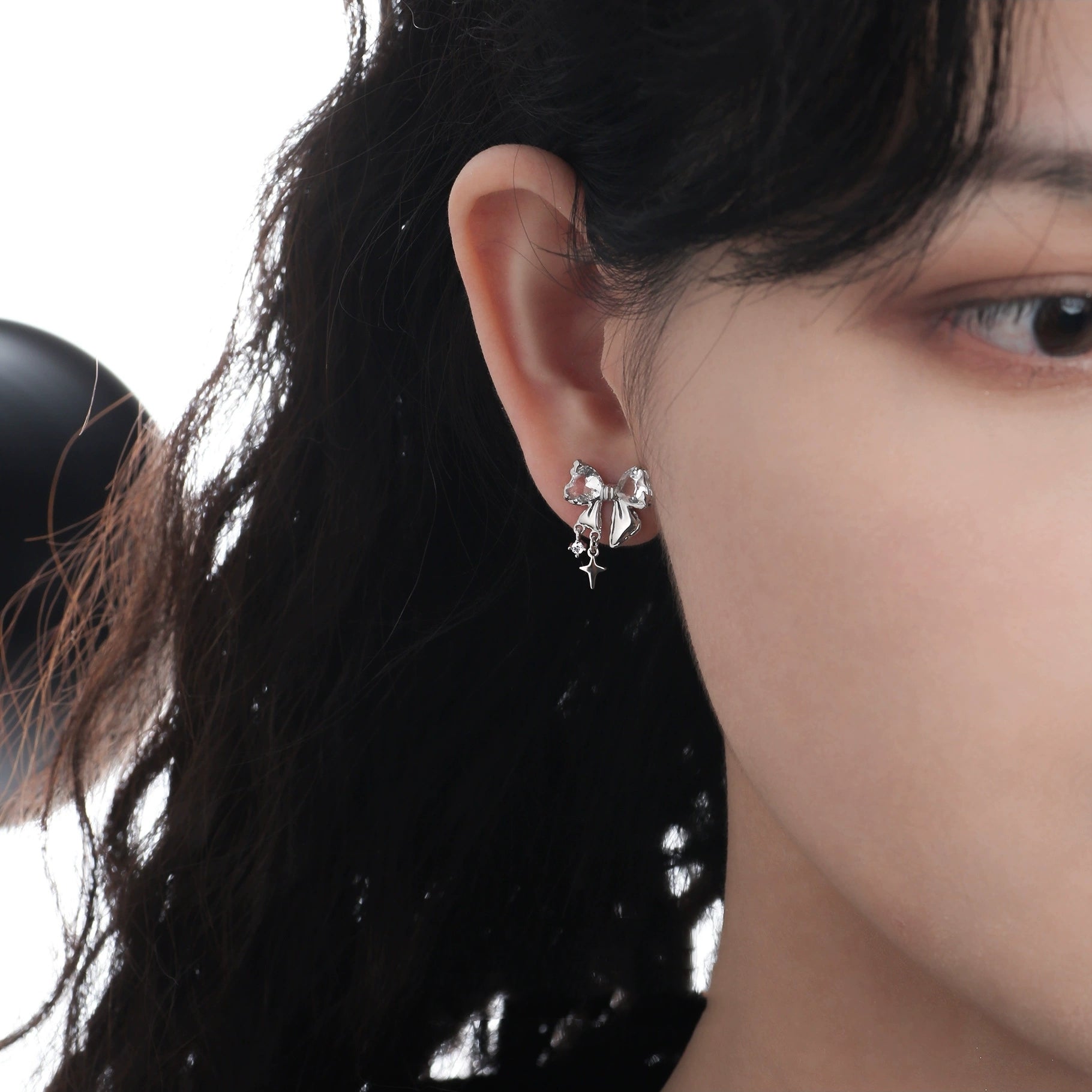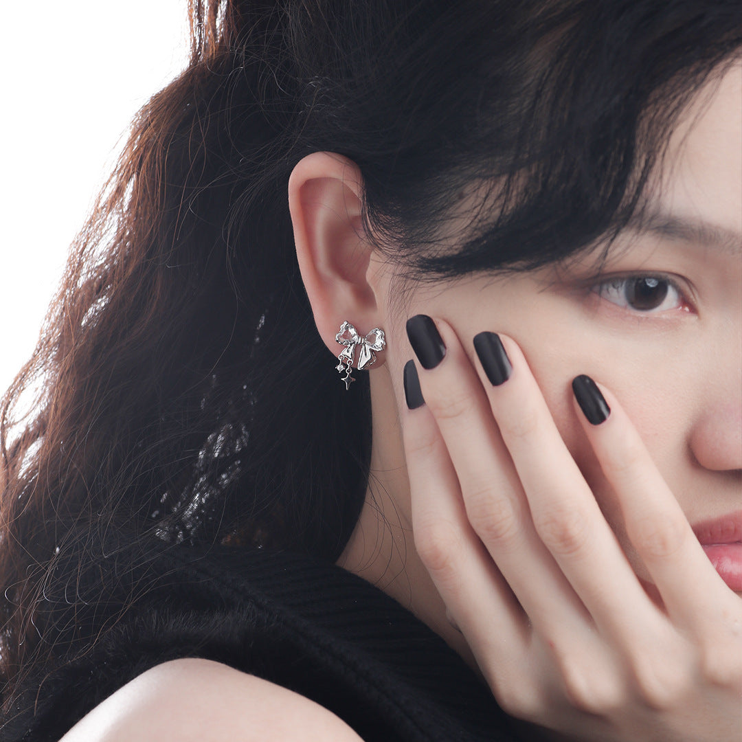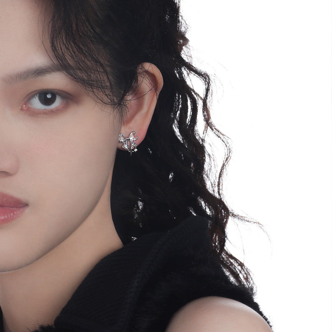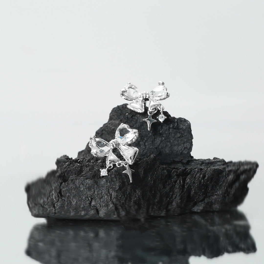 Süße Mädchen S925 Silber glänzende Zirkon Bogen Stud Ohrring