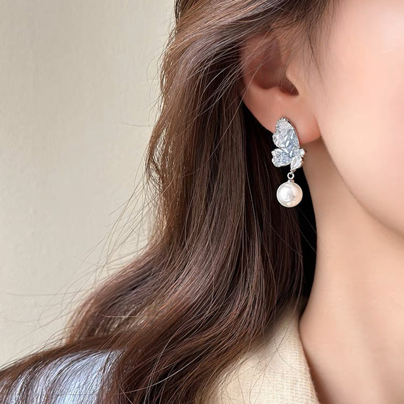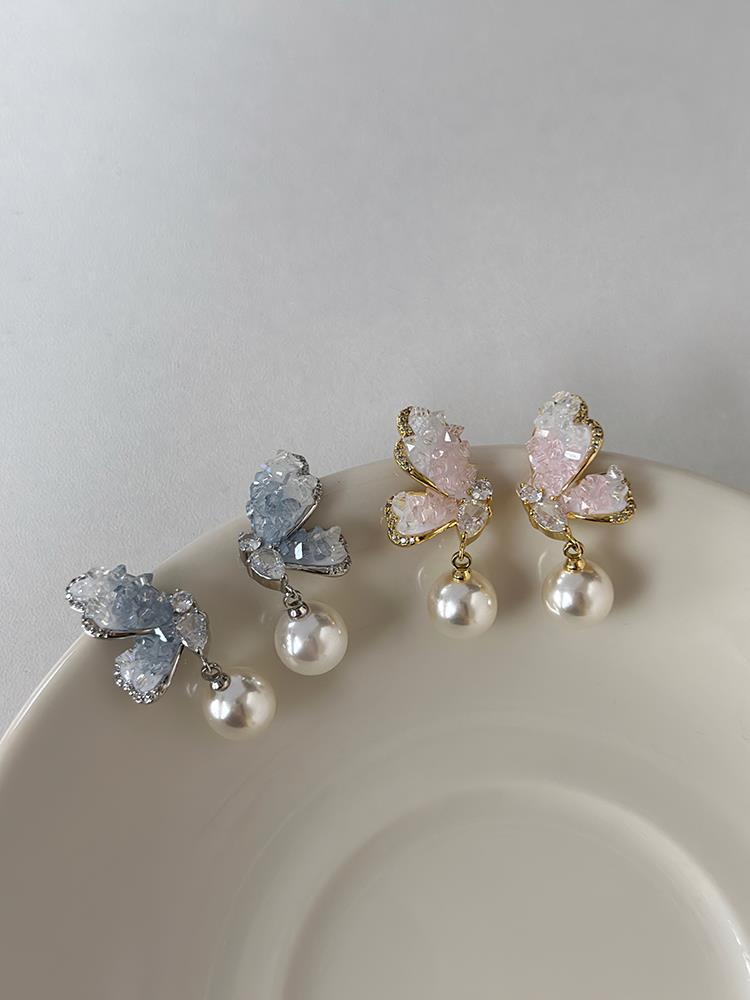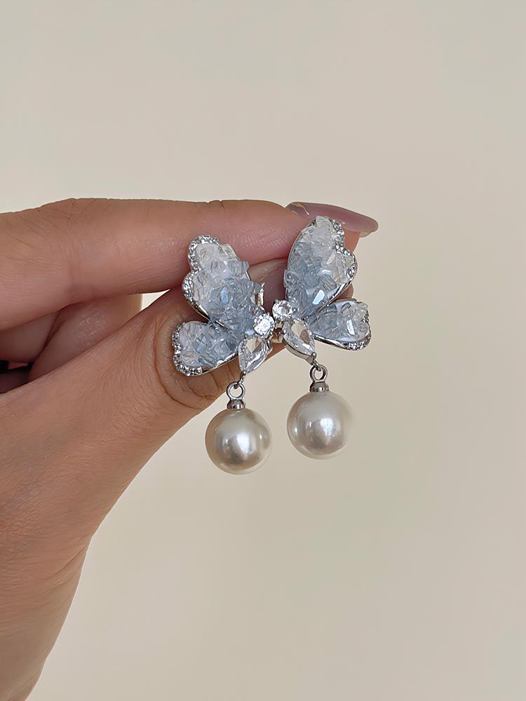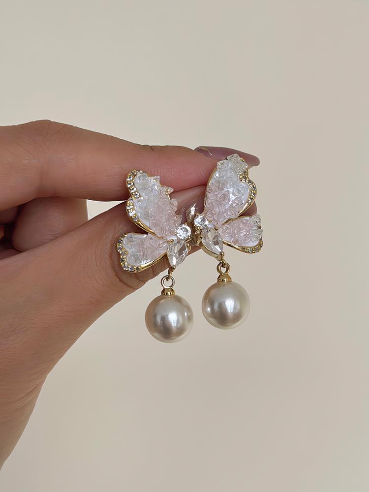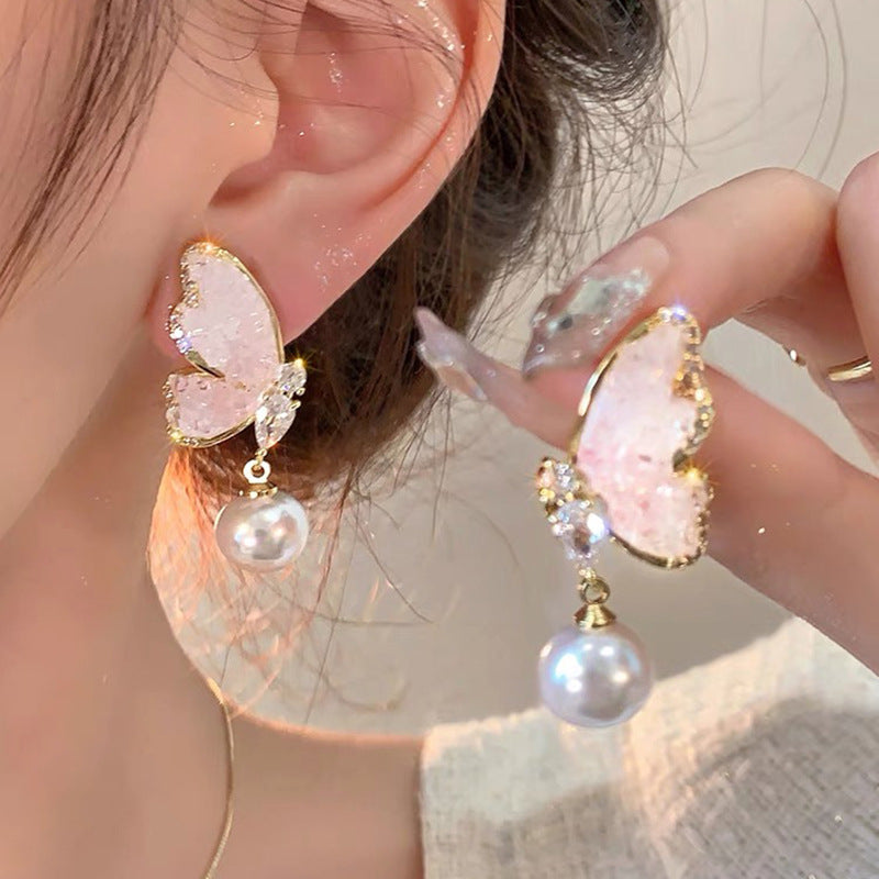 Damen Ohrstecker mit süßen Farbverlauf und Schmetterlingsperlen