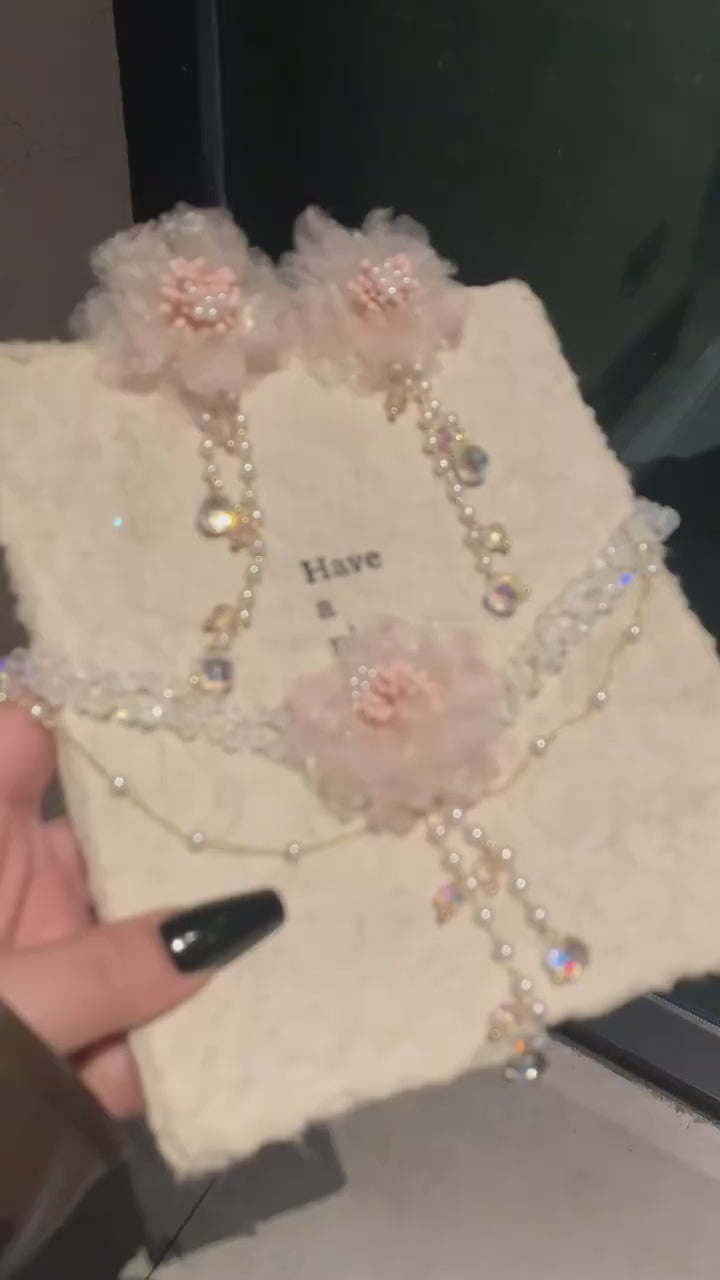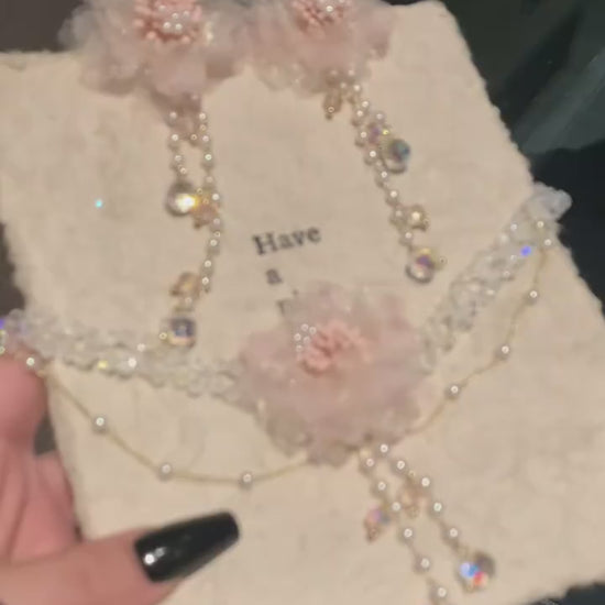 Süße rosa Blume Kristall Quaste Ohrring & Choker Halskette