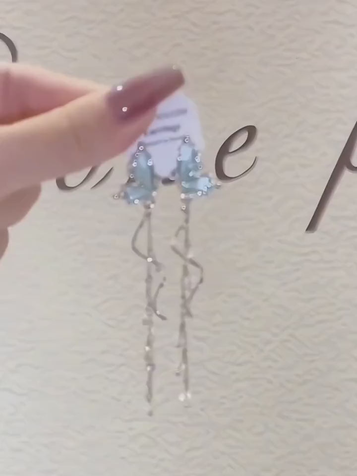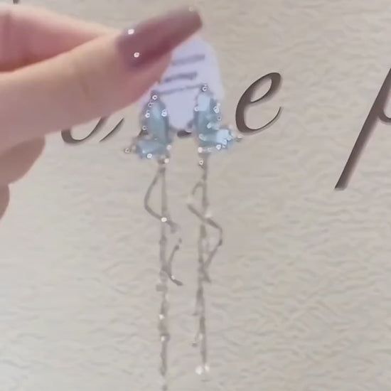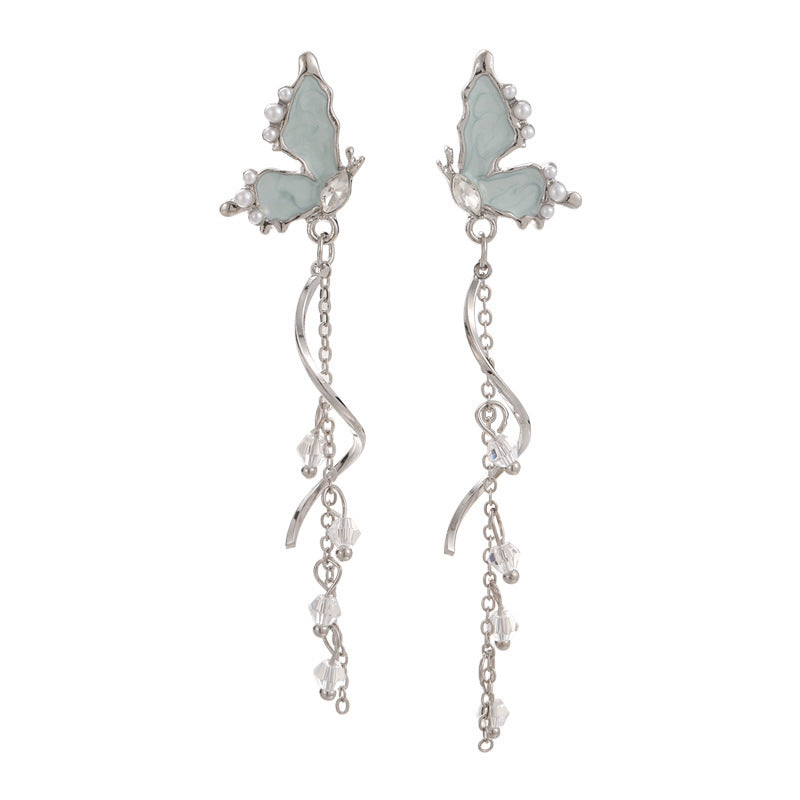 Einzigartiger langer Quastenohrring mit blauer Perle