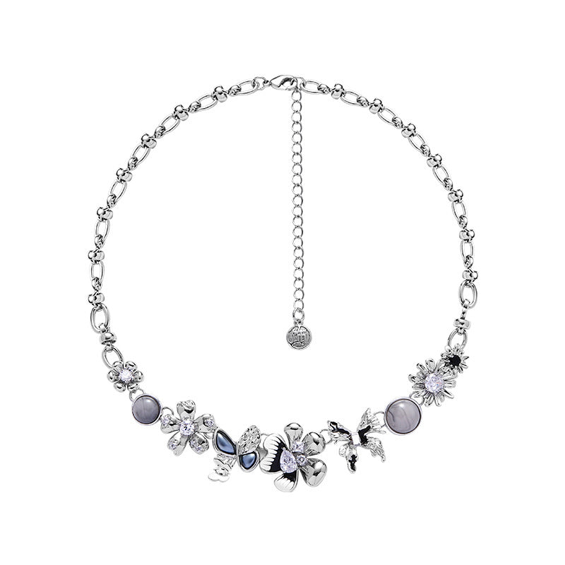 Einzigartige hübsche Blumen-Schmetterlings-Metallhalskette