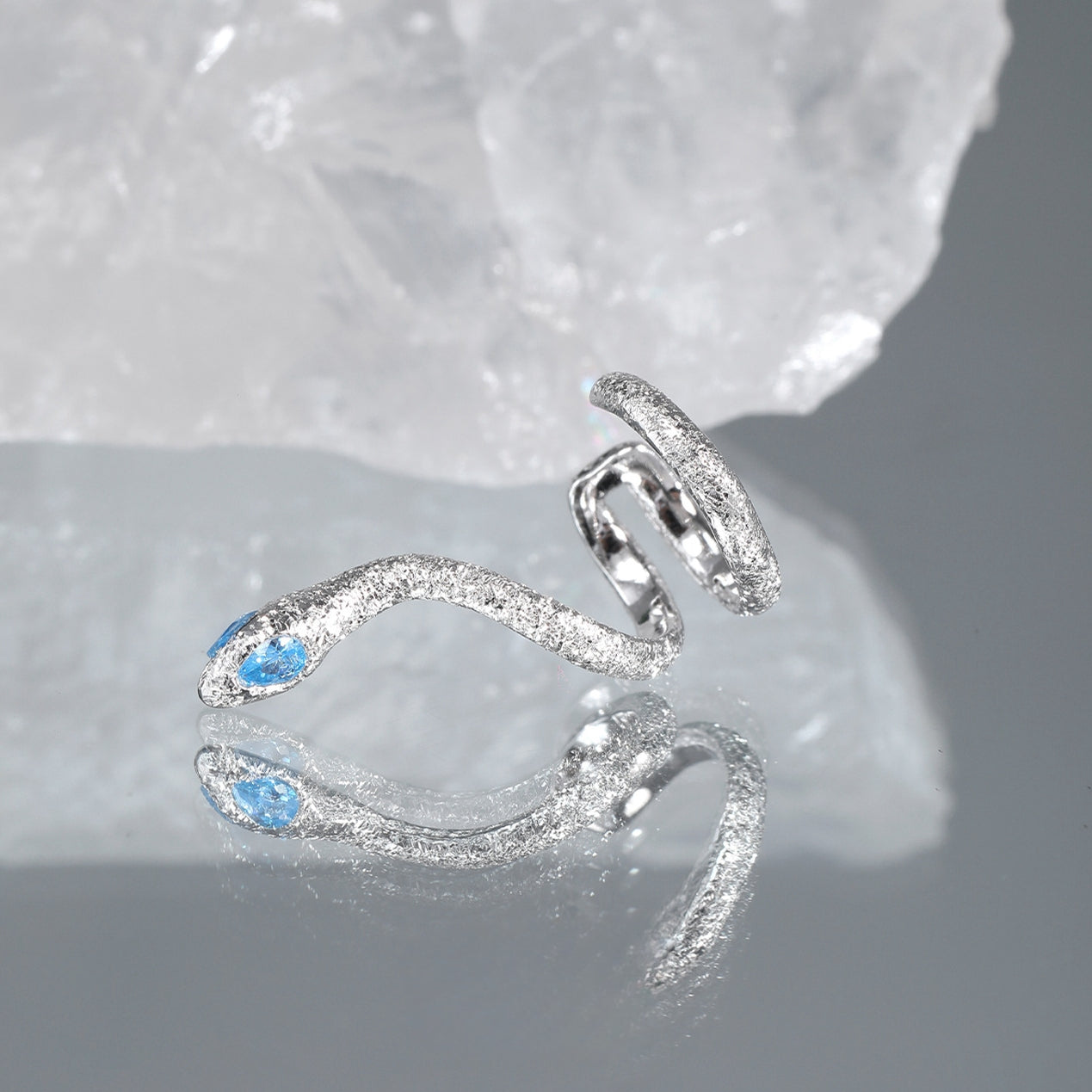 Unisex S925 Silber Slytherin Blaues Auge Schlange Ohr Manschette