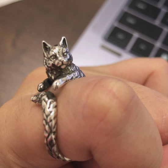 Dieser stilvolle Unisex-Ring ist aus einer Sterlingsilberlegierung gefertigt. Er verfügt über ein süßes Retro-Katzendesign, das jedem Ensemble eine einzigartige und moderne Note verleiht. Das offene Design sorgt für eine perfekte Passform.