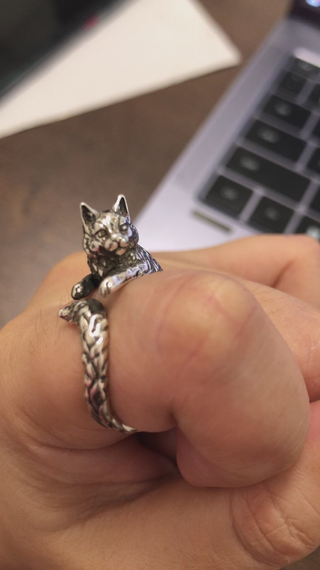 Unisex Silber Süßer Retro Katzen Offener Ring
