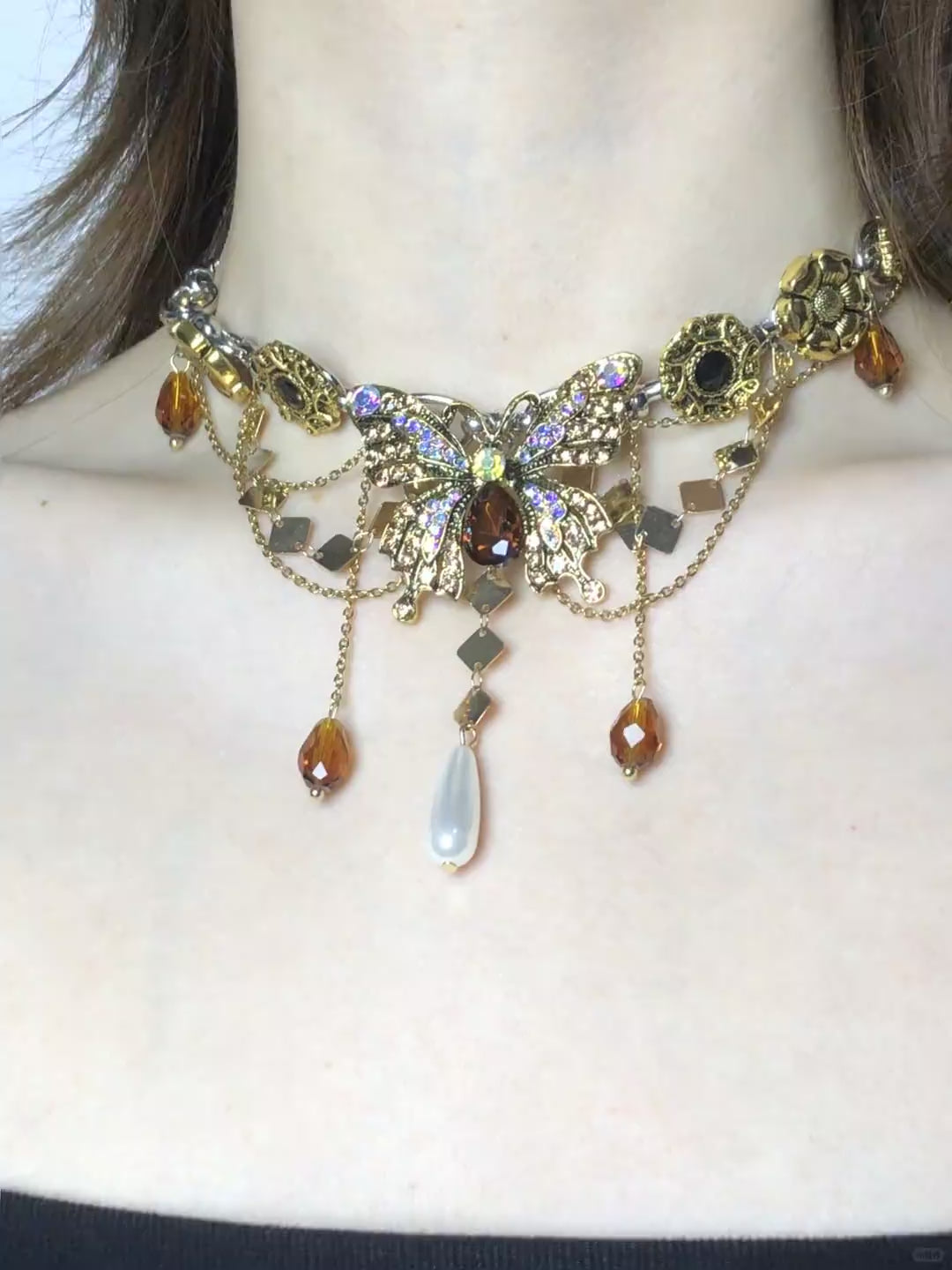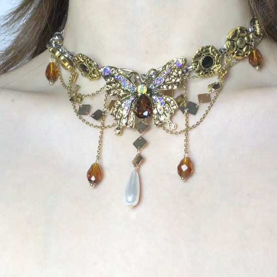 Vintage Mädchen Braun Schmetterling Quaste Choker Halskette