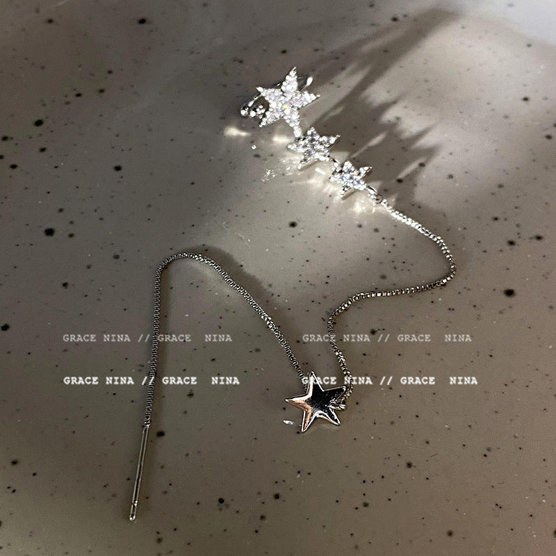 Ohrstecker mit Stern-Quaste für Damen, glänzend, Silber