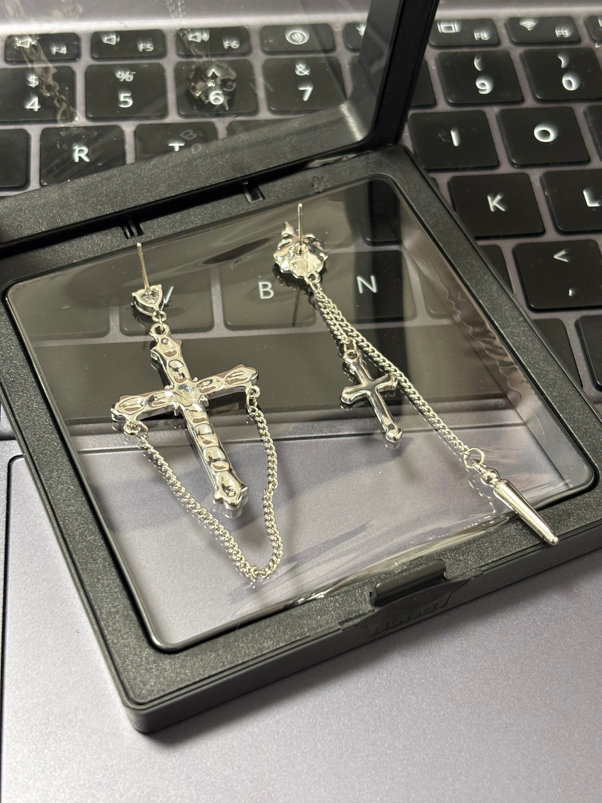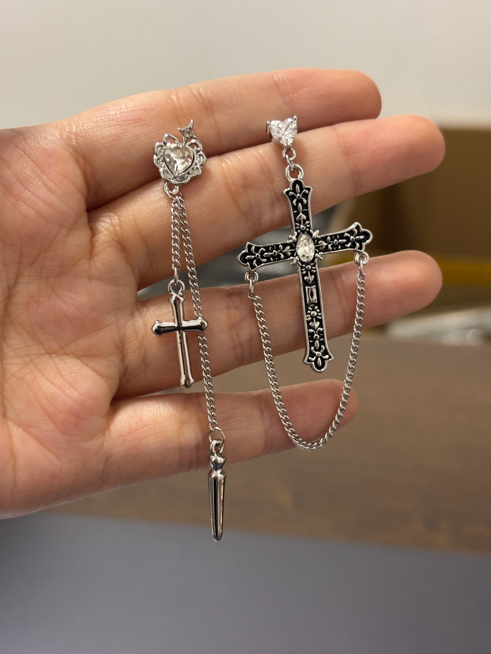Y2K Gothic Punk Cross Rhinestone Asymmetrical Earrings