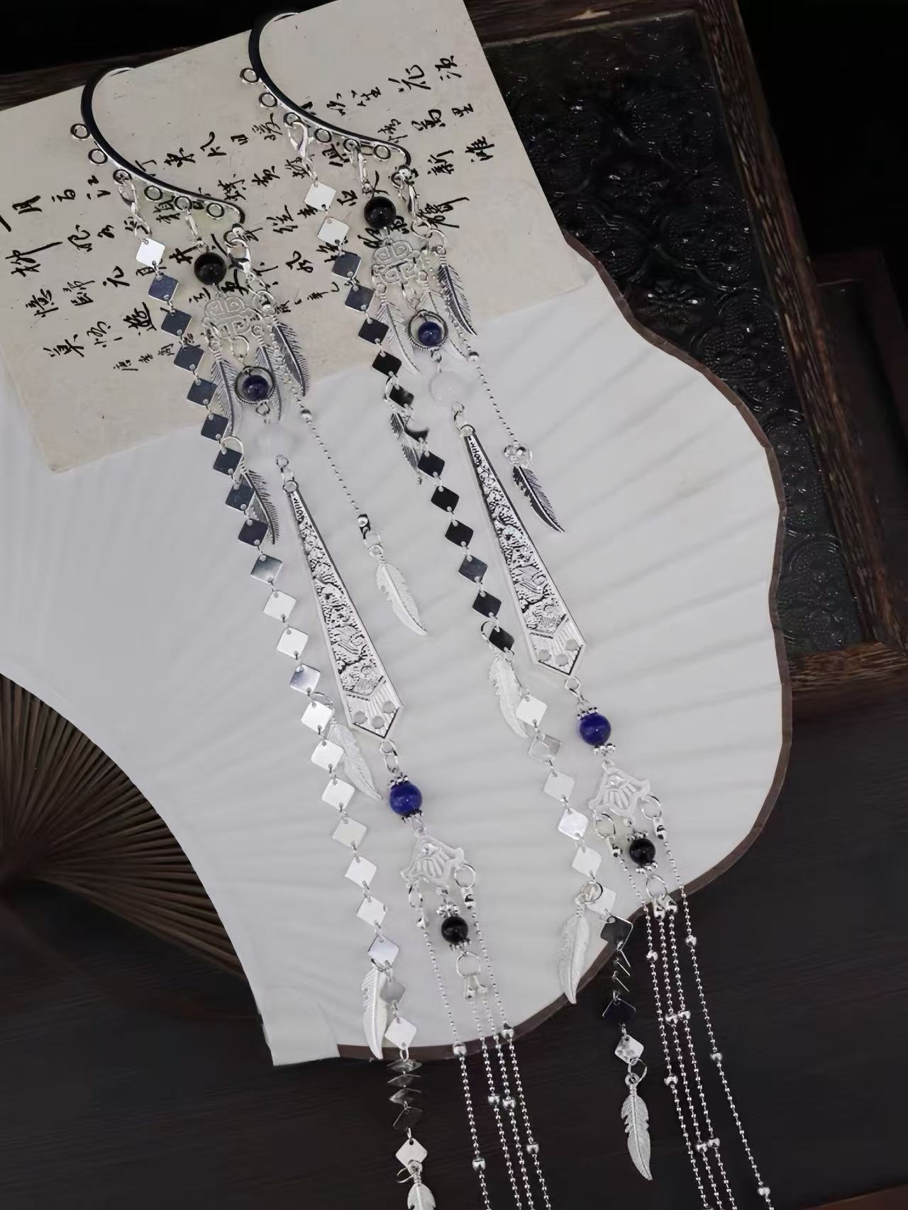 Antique-style Long Tassel Star Feather Ear Cuffs
