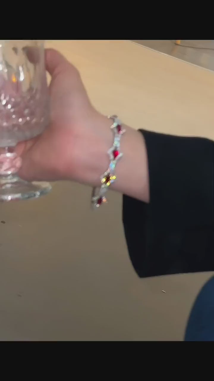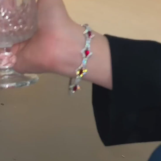 Chic Red Diamond-encrusted Zircon Buckle Bracelet