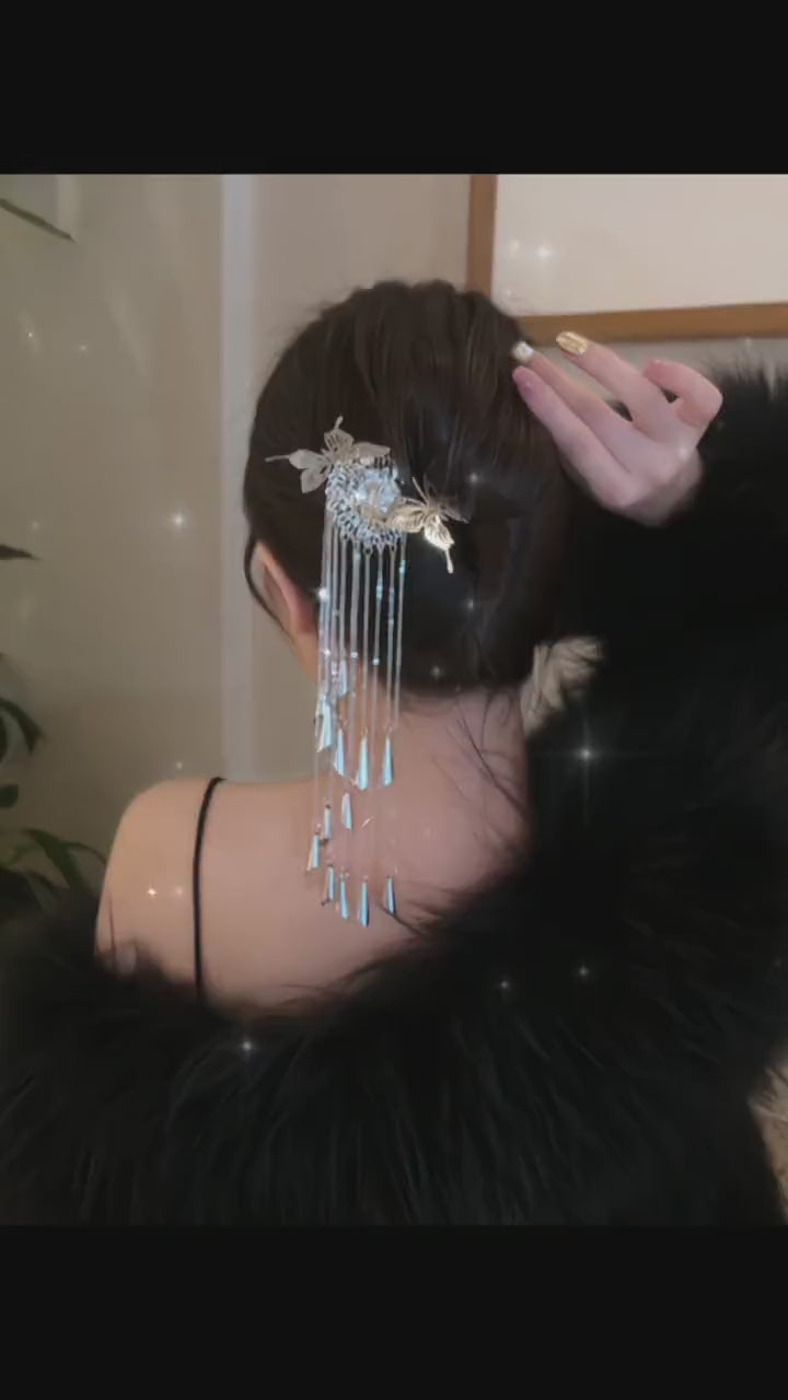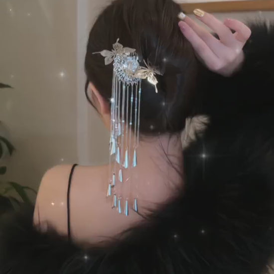 Chic Women Silver Butterfly Metal Tassel Hairpin
