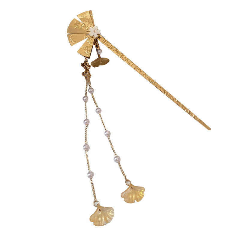 Chinese Style Gold Fan Floral Tassel Hairpin