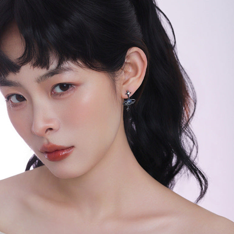 Goth Dark Sweet & Cool Star & Moon Asymmetric Stud Earrings
