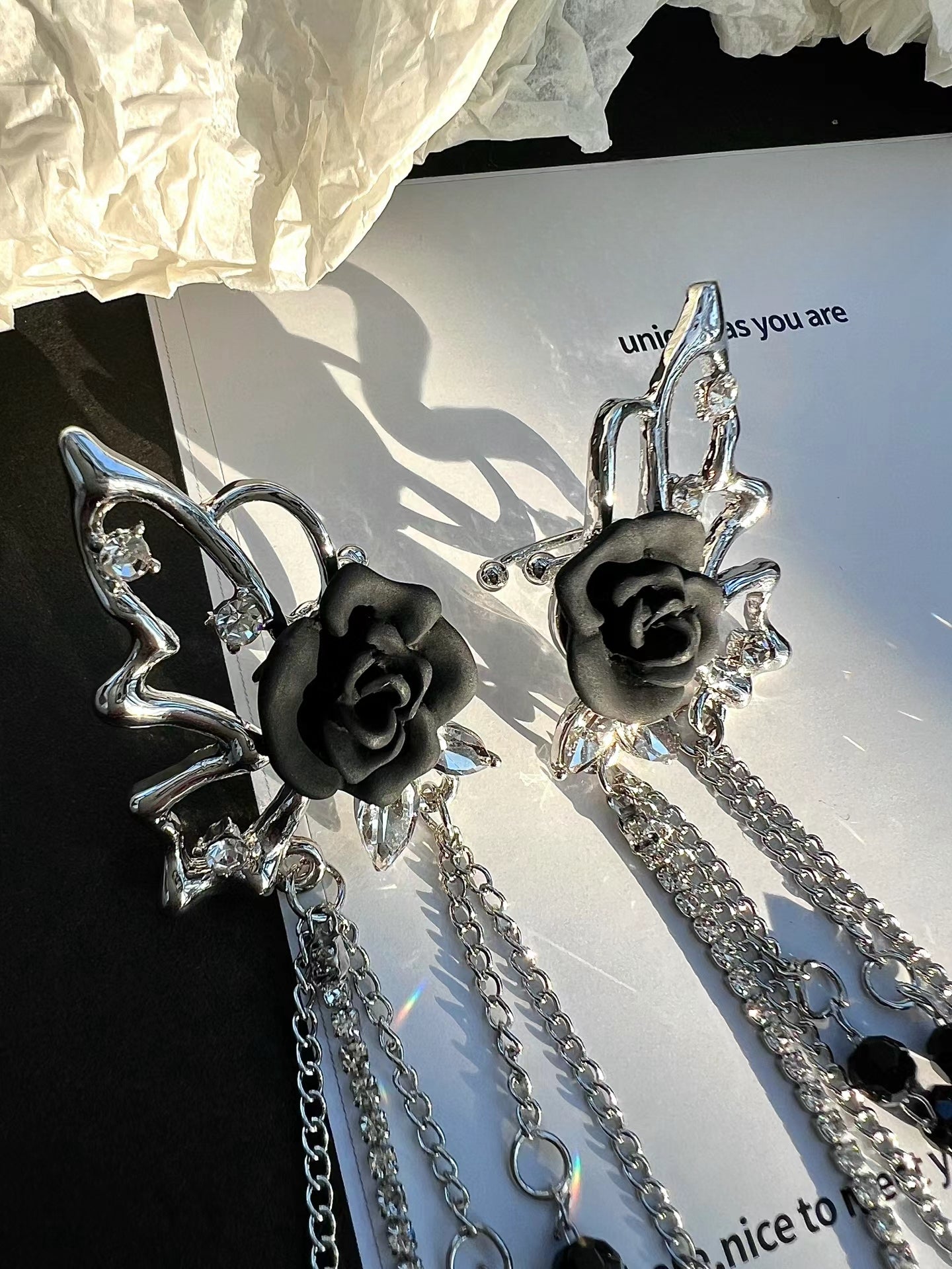 Gothic Butterfly Black Rose Tassel Ear Cuff