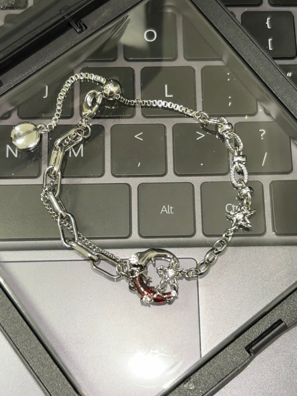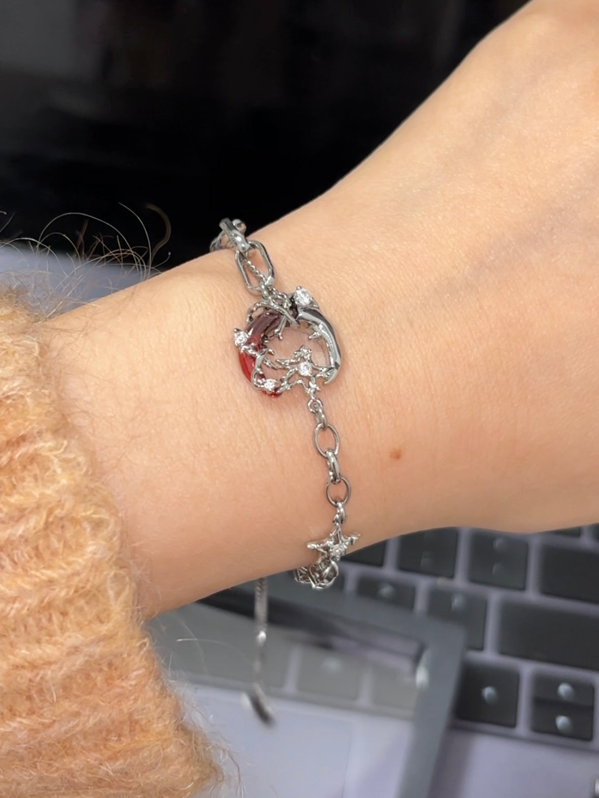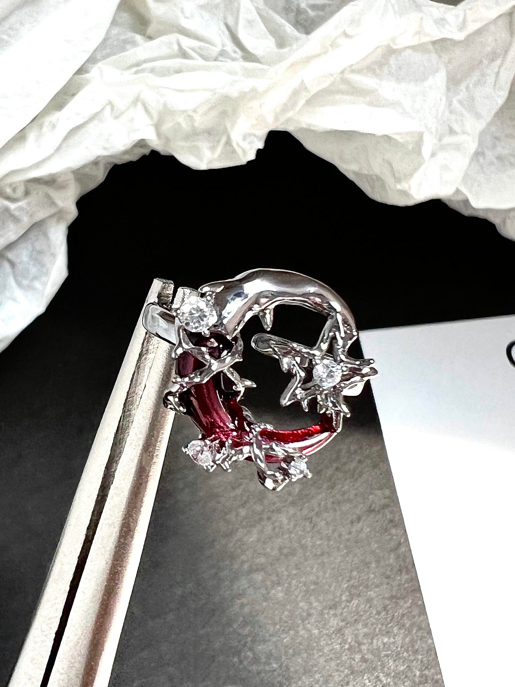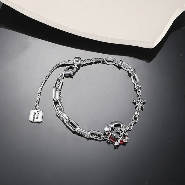 Gothic Style Red Moon Shining Star Asymmetrical Earrings