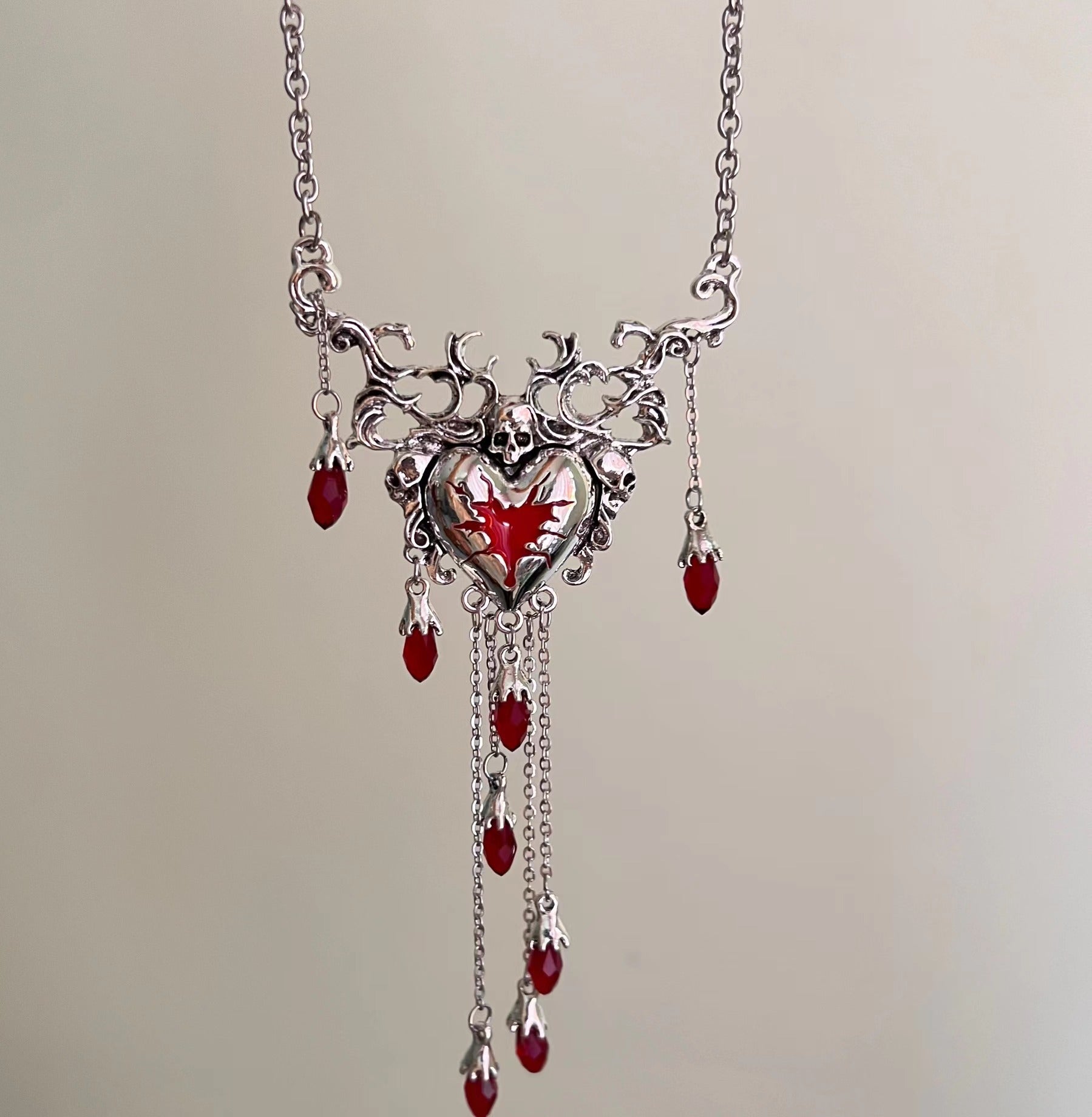 Punk Style Skull Heart Tassel Spicy Girl Necklace
