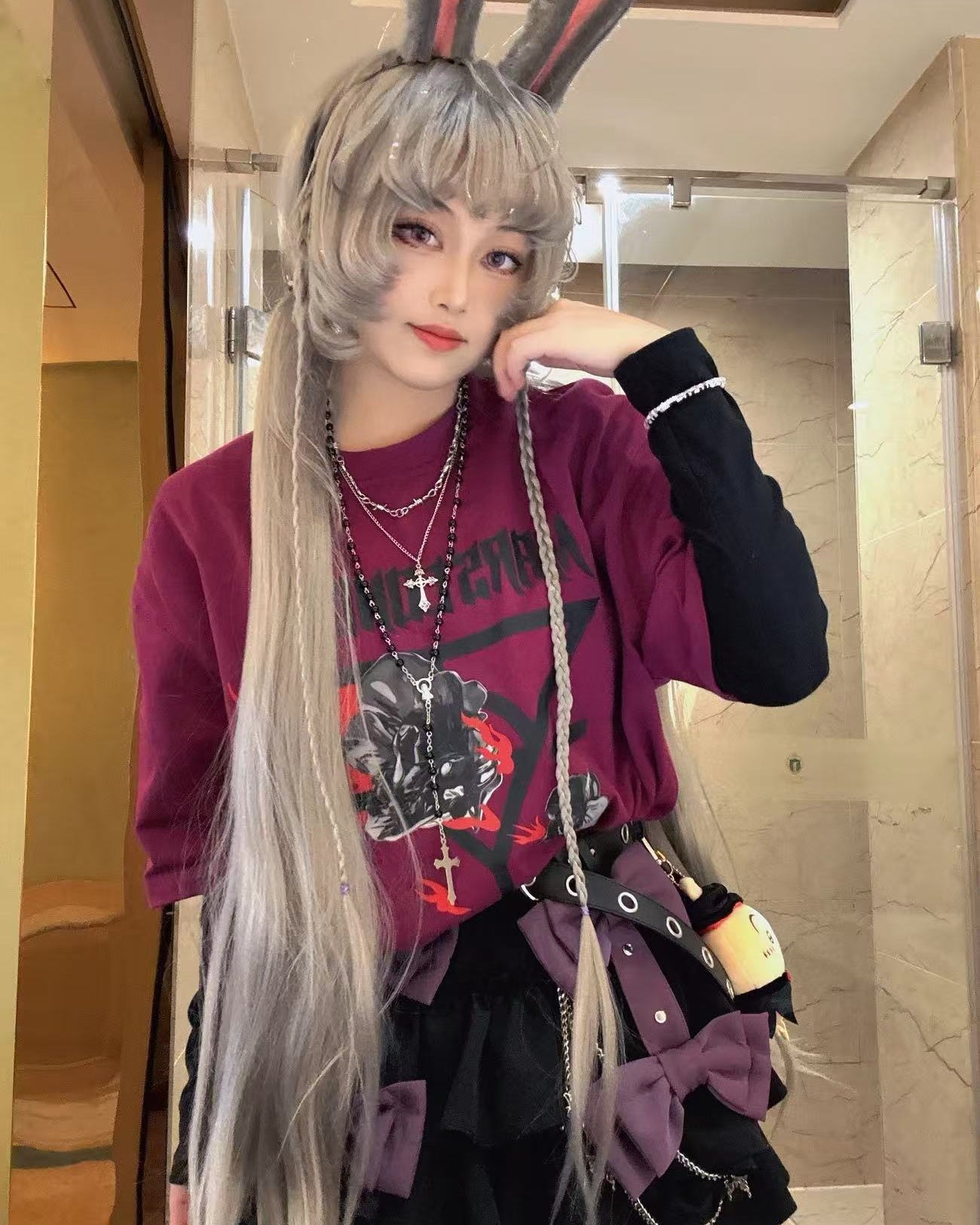 Y2K Goth Vintage Cross Beads Multi-Layer Necklace