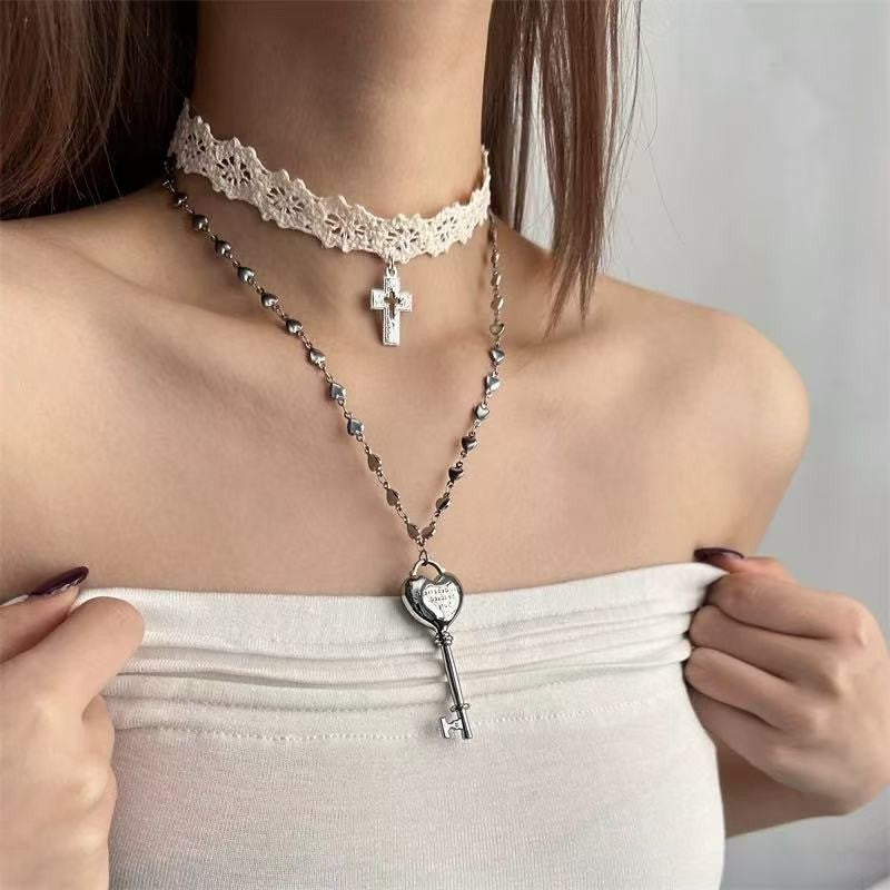 Y2K White Cross & Key Choker Necklace